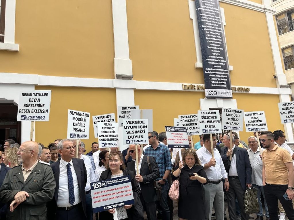 İzmir Serbest Muhasebeci Mali Müşavirler Odası (İZSMMMO) tarafından, mali müşavirlerin sorunlarını gündeme getirmek için basın açıklaması gerçekleştirildi. Açıklama, Türkiye Serbest Muhasebeci Mali Müşavirler ve Yeminli Mali Müşavirler Odaları Birliği (TÜRMOB) başta olmak üzere ülkenin dört bir yanında hizmet veren Serbest Muhasebeci Mali Müşavirler Odaları tarafından Türkiye çapında eş zamanlı düzenlendi. İZSMMMO Yönetim Kurulu Başkanı Şerif Yıldız açıklamada, mali müşavirlerin iş yükü arttığını ancak gördüğü değerin azaldığını ifade ederek mali müşavirlerin acil ve öncelikli taleplerini 12 maddede sıraladı.