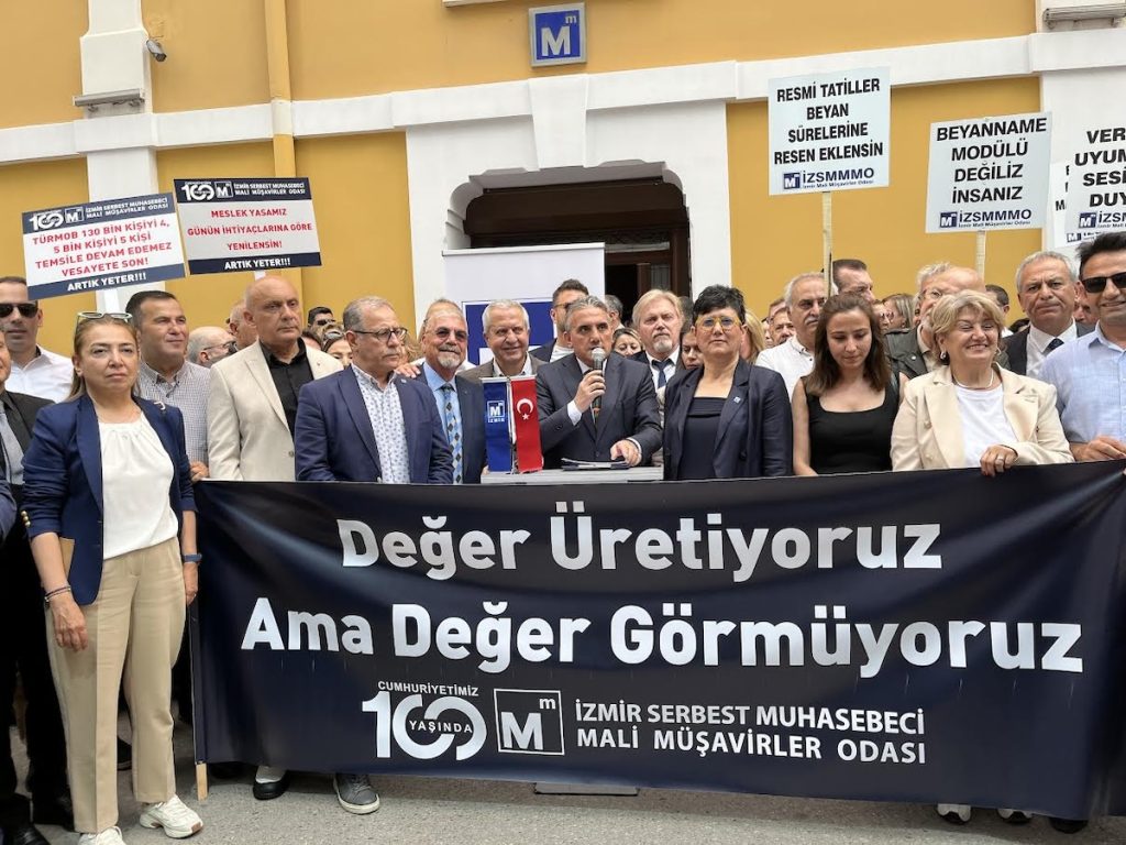 İzmir Serbest Muhasebeci Mali Müşavirler Odası (İZSMMMO) tarafından, mali müşavirlerin sorunlarını gündeme getirmek için basın açıklaması gerçekleştirildi. Açıklama, Türkiye Serbest Muhasebeci Mali Müşavirler ve Yeminli Mali Müşavirler Odaları Birliği (TÜRMOB) başta olmak üzere ülkenin dört bir yanında hizmet veren Serbest Muhasebeci Mali Müşavirler Odaları tarafından Türkiye çapında eş zamanlı düzenlendi. İZSMMMO Yönetim Kurulu Başkanı Şerif Yıldız açıklamada, mali müşavirlerin iş yükü arttığını ancak gördüğü değerin azaldığını ifade ederek mali müşavirlerin acil ve öncelikli taleplerini 12 maddede sıraladı.