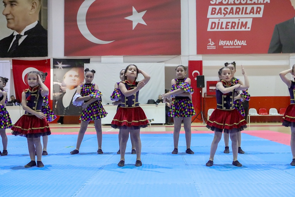 Bayraklı Belediyesi Spor İşleri Müdürlüğü’nün alanında uzman eğitmenleri tarafından 16 branşta verilen kurslardan jimnastik kursuna katılan kursiyerler, yıl boyunca öğrendikleri becerileri sergiledi. Mustafa Kemal Atatürk Salonu’nda gerçekleştirilen etkinlikte sahneye çıkan sporcular, nefes kesen gösterilerinde, esneklik ve ustalık gerektiren hareketleriyle salonu dolduran izleyicilerden büyük alkış aldı. Etkinliğe Bayraklı Belediye Başkanı İrfan Önal’ın yanı sıra CHP Bayraklı İlçe Başkanı Didem Gültekin, meclis üyeleri, Bayraklı Kent Konseyi Yönetim Kurulu Başkanı Aytekin Keskin, yüzlerce sporcu ve aileleri katıldı.