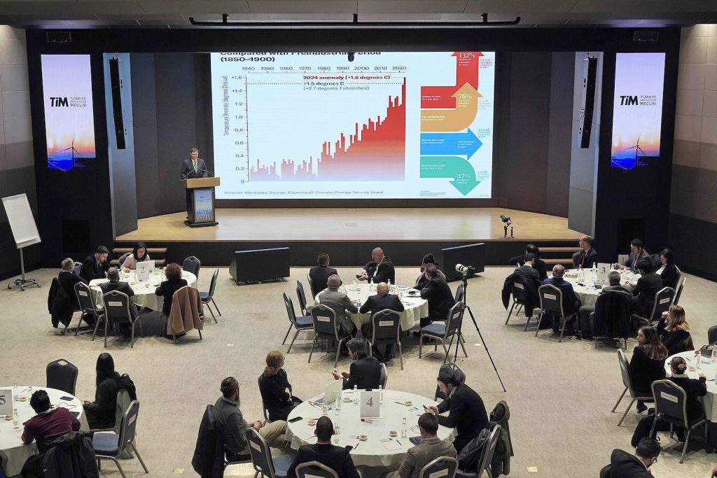 TİM Başkanvekili ve Yenilenebilir Enerji Teknolojileri Çalışma Grubu Başkanı Çetin Tecdelioğlu da, konuşmasında sanayiyi geliştirmek ve özellikle katma değerli ihracatı artırmak için yenilenebilir enerji konusunu büyük bir ciddiyetle ele almak zorunda olduklarını vurguladı. Tecdeliğolu, “2023’te yenilenebilir enerjinin büyüklüğü 1,2 trilyon dolara ulaşmış bulunuyor. Bu büyük pastadan Türkiye, yüzde 1,5 gibi çok küçük pay alıyor. 2023’te pazarın büyüklüğünün 2,5 trilyon dolara ulaşması bekleniyor. Bu tarihe kadar ülkemizin alüminyumunu, bakırını, paslanmazını, kimyasal grubunu birçok başlıktaki mevcut kaynaklarımızla dünyanın beklentilerini karşılayacak hale getirip katma değerli ihracatımızı artırabiliriz. İşte bu hedef doğrultusunda farkındalığı artırmak için buradayız” dedi.