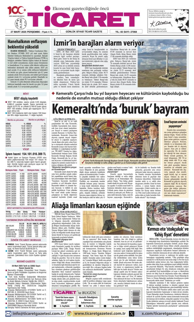 YAZAR, ARŞİV, ÖZEL ÖN SAYFA Ticaret Gazetesi’nde bugün 27 Mart 2025 1 den az dakika Paylaş FacebookTwitterPinterestWhatsAppTelegram Önceki İçerikHayat nasıl mı? Yaşayan bilirSonraki İçerik“İzmir’de hane sayısı 2050’de 2,5 milyon olacak” İLGİLİ HABERLER ÖN SAYFA TİCARET’te bugün 18 Ekim 2025 ÖN SAYFA TİCARET’te bugün 17 Ekim 2025 ÖN SAYFA TİCARET’te bugün 16 Ekim 2025 GÜNDEM 26. Barış Selçuk Gazetecilik Ödülleri’ne başvurular başladı 18 Ekim 2025 Kirli havanın Türk ekonomisine faturası 138 milyar dolar 18 Ekim 2025 Otomotiv satış sonrası pazarı 3. çeyrekte yatay seyrini sürdürdü 18 Ekim 2025 Ulusal Döngüsel Ekonomi Stratejisi ve Eylem Planı yürürlüğe girdi 18 Ekim 2025 Devamını Göster