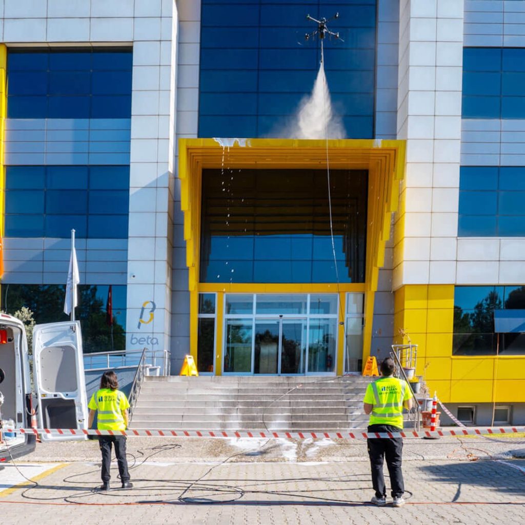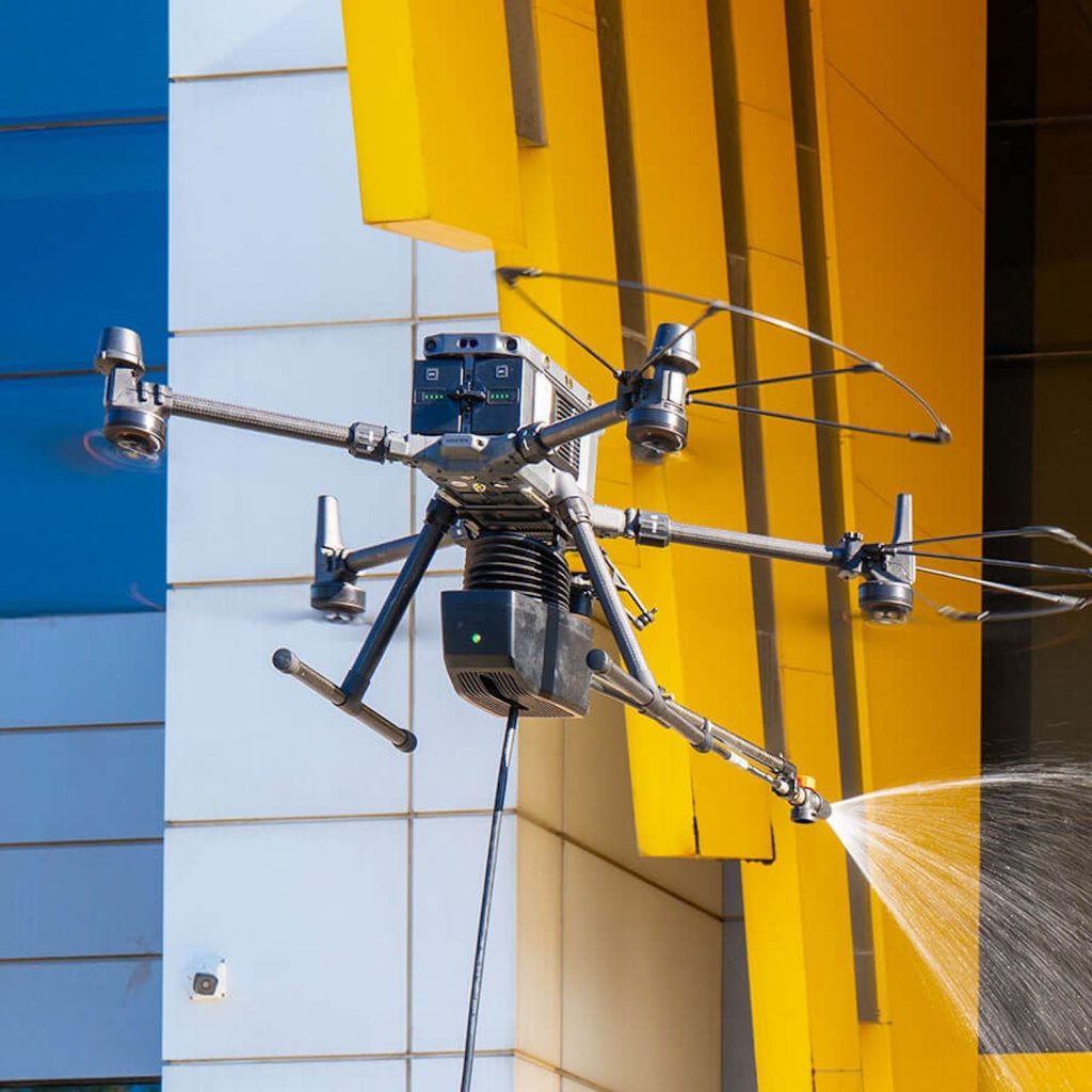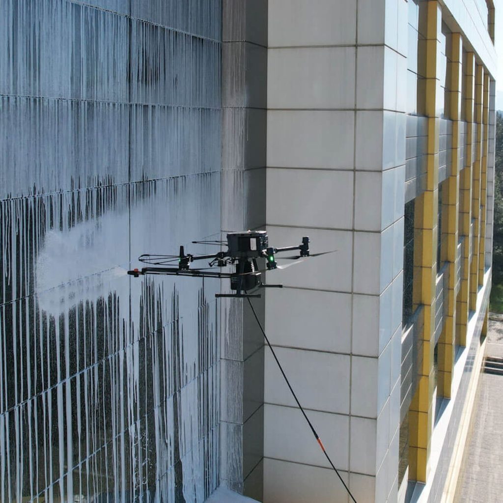 Günlük hayatta drone’lar binaların dış cephesini yıkayarak hem zamandan tasarruf sağlıyor hem insan sağlığını riske atmıyor