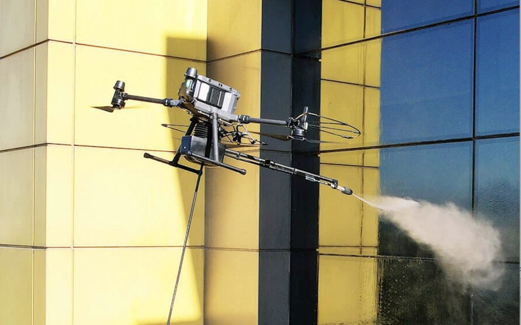 Günlük hayatta drone’lar binaların dış cephesini yıkayarak hem zamandan tasarruf sağlıyor hem insan sağlığını riske atmıyor