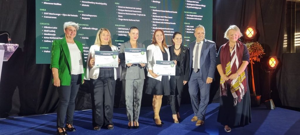 “Kırsal Yaşamın Filizlendiği Yer” başlıklı hikâyesiyle dikkat çeken projede Efes Tarlası Yaşam Köyü, geleneksel tarım bilgisinin kaybı ve kırsal alanlardaki ekonomik gerilemeye karşı geliştirilen yenilikçi bir çözüm olarak öne çıkmayı başardı. Efes Tarlası Yaşam Köyü, bu yıl “Gelişen Topluluklar” kategorisinde değerlendirilerek “En İyi 100” listesine girerken, eğitim, tarım, turizm ve halkı bir araya getirerek sadece yerel halk için değil, aynı zamanda Türkiye genelinde sürdürülebilir kalkınmaya örnek gösterildi. Aynı konferansta, İzmir Büyükşehir Belediyesi Turizm Şefi Sinem Soygül’ün konuşmacı olarak katıldığı “Destinasyon Yönetimi ve Sürdürülebilir Turizmde Başarıya Giden Yollar” panelinde, Selçuk ve Urla’nın Green Destinations tarafından verilen gümüş sertifikasyonları ve bu iki ilçenin sürdürülebilir turizm çalışmaları da dünyanın dört bir yanından gelen katılımcılarla paylaşıldı. Efes Tarlası Yaşam Köyü, GastroFarm Urla Festivaller Birliği ve Güm-Öz Turuncu Eller Tarımsal Kalkınma Kooperatifinin kazandığı ödüller Green Destinasyon Konferansı kapsamında gerçekleştirilen ödül töreninde verildi. Başkan Filiz Ceritoğlu Sengel, törende aldığı ödülü Efes Selçuk’a armağan etti.