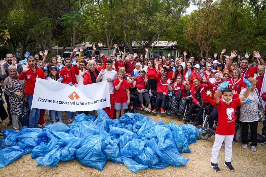 İzmir Büyükşehir Belediyesi ve İzmir Ekonomi Üniversitesi (İEÜ) Japonya’daki Yaizu Chuo Lisesi’nin plaj temizliği seferberliğini genişletmek ve lise öğrencilerinin deniz çöpü sorununu çözmede öncülük ettiği bir trend yaratmak için dünya rekoru kırmayı hedeflediği harekete ortak oldu. İzmir Büyükşehir Belediyesi Sosyal Hizmetler Dairesi Başkanlığı Engelli Çalışmaları Şube Müdürlüğü ve İzmir Ekonomi Üniversitesi EKOTAM Tasarım Araştırma ve Uygulama Merkezi, anlamlı hedefe destek vermek amacıyla İnciraltı Kent Ormanı’nda düzenlenen sahil kıyı temizliği organizasyonuna dernekleri, okulları ve öğrencileri dahil etti. “Bir saat içinde plaj temizliği için çevrimiçi olarak kayıt yaptıran en çok kişi” kategorisinde rekor kırmak için temizliğe çıkan İzmirlilere Japonya’dan yapılan online bağlantı ile destek verildi. Katılımcılar Büyükşehir Belediyesi tarafından dağıtılan maske, eldiven, çöp torbası ve su ile hijyen mesaisine başlarken Türkiye ve Japonya bayraklarını temsilen kırmızı ve beyaz kıyafetler tercih edildi.