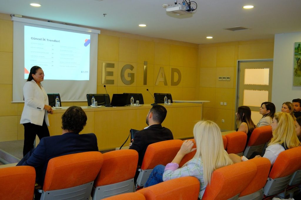 Ege Genç İş İnsanları Derneği (EGİAD), değişen iş dünyası dinamiklerini ve insan odaklı yönetim anlayışını gündeme taşıdı. “İnsan ve Kültür: Güncel Trendler” başlıklı seminer, EGİAD Dernek Merkezi’nde gerçekleştirildi. Etkinliğe, Flama İnsan Kaynakları ve Yönetim Danışmanlığı Kurucusu Aylin Özizmir konuk konuşmacı olarak katılırken, EGİAD üyeleri de güncel İK trendlerine ilişkin önemli bilgiler edindi. Günümüzde, iş dünyasında “İnsan Kaynakları” anlayışının yerini giderek “İnsan ve Kültür” yaklaşımının aldığına dikkat çekilen seminerde; işyeri kültürünün çalışan bağlılığı ve performans üzerindeki etkileri, yapay zekânın işe alım ve eğitim süreçlerindeki rolü ile geleceğin liderlik modelleri gibi konular ele alındı.
