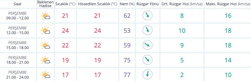 ŞEHİRLERDEN ŞEHİR HABERLERİ İzmir’de bugün hava nasıl? 16 Ekim 2025 1 den az dakika Meteoroloji Genel Müdürlüğü tahminlerine göre bugün İzmir’de 17 derece az bulutlu bir hava hakim olacak. Gündüz sıcaklık 21 derceyken gece 17 dereceler görülecek. Paylaş FacebookTwitterPinterestWhatsAppTelegram Önceki İçerikDöviz fiyatları bugün ne kadar?Sonraki İçerikİzmir’de günün nöbetçi eczaneleri İLGİLİ HABERLER ŞEHİR HABERLERİ İzmir’de planlı su kesintileri yeniden uzatıldı 16 Ekim 2025 ŞEHİR HABERLERİ Genç liderler asamblede buluştu 16 Ekim 2025 ŞEHİR HABERLERİ 2054 İzmir Nazım İmar Planı, değerlendirme toplantısı yapıldı 16 Ekim 2025 GÜNDEM İzmir’de planlı su kesintileri yeniden uzatıldı 16 Ekim 2025 Ticaret Bakanlığı’ndan hayvan kaçakçılarına operasyon 16 Ekim 2025 TENMAK’tan GES ve RES teknolojilerine 300 milyon TL destek 16 Ekim 2025 El örgü ipliği pazarı 10 milyar dolara ulaşacak 16 Ekim 2025 Devamını Göster
