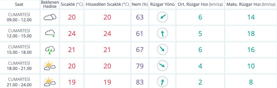 ŞEHİRLERDEN ŞEHİR HABERLERİ İzmir’de sonbahar etkisini gösteriyor 18 Ekim 2025 1 den az dakika Meteoroloji Genel Müdürlüğü’nün tahminlerine göre bugün İzmir’de 17 derece çok bulutlu bir hava hakim olacak. Gün içerisinde akşam 18.00’a kadar yağış bekleniyor. Paylaş FacebookTwitterPinterestWhatsAppTelegram Önceki İçerikTİCARET’te bugünSonraki İçerikİzmir’in nöbetçi eczane listesi İLGİLİ HABERLER ŞEHİR HABERLERİ İzmir’in 10 ilçesinde su kesintisi olacak 18 Ekim 2025 ŞEHİR HABERLERİ İzmir’in nöbetçi eczane listesi 18 Ekim 2025 ŞEHİR HABERLERİ Karşıyaka’da Muhtarlar Günü’ne özel program 17 Ekim 2025 GÜNDEM Otomotiv satış sonrası pazarı 3. çeyrekte yatay seyrini sürdürdü 18 Ekim 2025 Ulusal Döngüsel Ekonomi Stratejisi ve Eylem Planı yürürlüğe girdi 18 Ekim 2025 Kruvaziyer limanlarında Türkiye ivme kazandı 18 Ekim 2025 Sanayici, yeşil dönüşüme hazırlanıyor 18 Ekim 2025 Devamını Göster