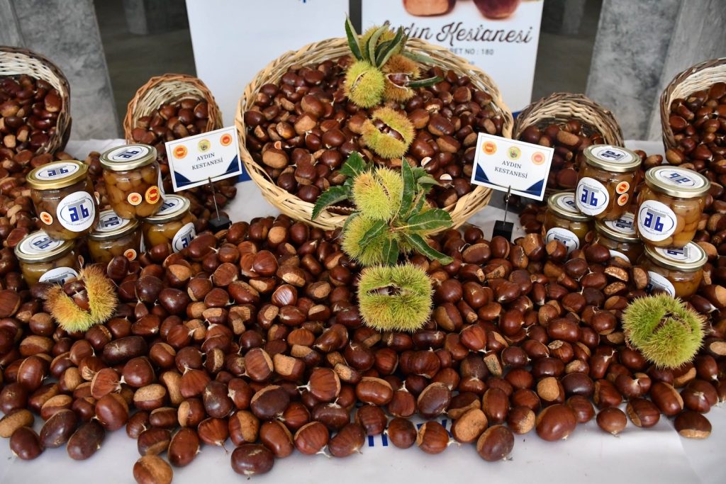 Aydın’ın önemli tarımsal ürünlerinden biri olan Avrupa Birliği Coğrafi İşaret tesciline sahip Aydın Kestanesi’nde hasat sezonu başladı. Aydın Ticaret Borsası, 2025/2026 sezonunun ilk Aydın Kestanesi’ni üreticilerden kilogramı 550 TL’den teslim aldı. Aydın Ticaret Borsası tarafından düzenlenen ‘Kestane İlk Alım Töreni’ne; Aydın Ticaret Borsası Yönetim Kurulu Başkanı Fevzi Çondur ve Meclis Üyeleri, Aydın İl Tarım ve Orman Müdürü Ayhan Temiz, ilimizdeki kurum müdürleri, bölge oda ve borsa başkanları ile üreticiler katılım sağladı.