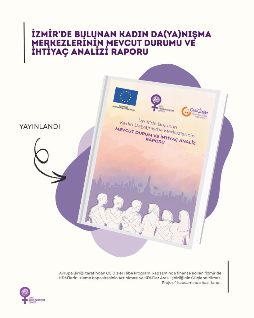 İzmir Kadın Dayanışma Derneği tarafından yürütülen ‘İzmir’de Kadın Da(ya)nışma Merkezlerinin (KDM) İzleme Kapasitesinin Artırılması ve KDM’ler Arası İşbirliğinin Güçlendirilmesi Projesi’ kapsamında hazırlanan ‘İzmir’de Bulunan Kadın Da(ya)nışma Merkezlerinin Mevcut Durum ve İhtiyaç Analizi Raporu’ yayımlandı. Çevrimiçi olarak yayınlanan ve Nilgün Karacaoğlu tarafından hazırlanan bu raporda elde edilen bulguların yalnızca İzmir için değil, Türkiye genelinde ve uluslararası düzeyde KDM’lerin kurumsal güçlenmesi için de önemli bir referans niteliğinde olduğu aktarıldı. Raporun devamında ise, “Bu doğrultuda; yerel yönetimleri, kamu kurumlarını, sivil toplumu, akademiyi ve politika yapıcılarını; KDM’lerin kurumsal kapasitesini güçlendirmeye, erişilebilirlik, hizmet niteliği ve veri yönetimi alanlarında eksikleri gidermeye, şiddetle mücadelede daha etkili yerel mekanizmalar oluşturmaya davet ediyoruz” ifadelerine yer verildi.