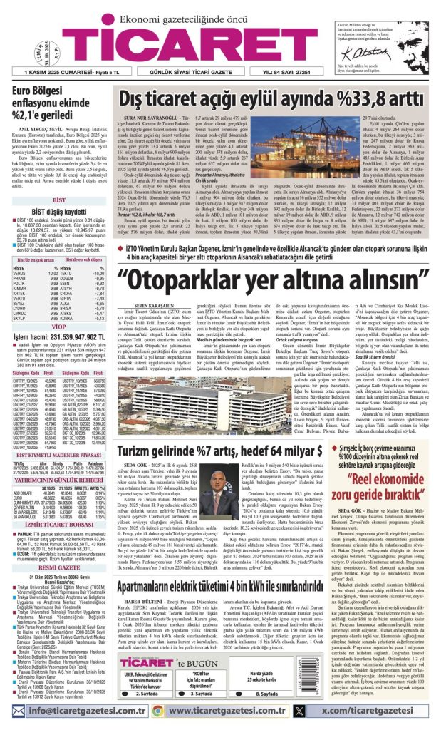 YAZAR, ARŞİV, ÖZEL ÖN SAYFA TİCARET’te bugün 1 Kasım 2025 1 den az dakika Paylaş FacebookTwitterPinterestWhatsAppTelegram Önceki İçerikEylül’de ihracat %2,8; ithalat %8,7 arttıSonraki İçerikİzmir’de hava nasıl? İLGİLİ HABERLER ÖN SAYFA “84 yıllık güven ile dijitalde devam!” 2 Şubat 2026 ÖN SAYFA TİCARET’te bugün 31 Ocak 2026 ÖN SAYFA TİCARET’te bugün 30 Ocak 2026 GÜNDEM İşaret veya numarayla tanımlanmayan gıdalar piyasadan çekilecek 11 Mart 2026 Siber güvenlik şirketler için değer yaratıyor 11 Mart 2026 Euro toparlanıyor 11 Mart 2026 Çeyrek altın ne kadar oldu? 11 Mart 2026 Devamını Göster