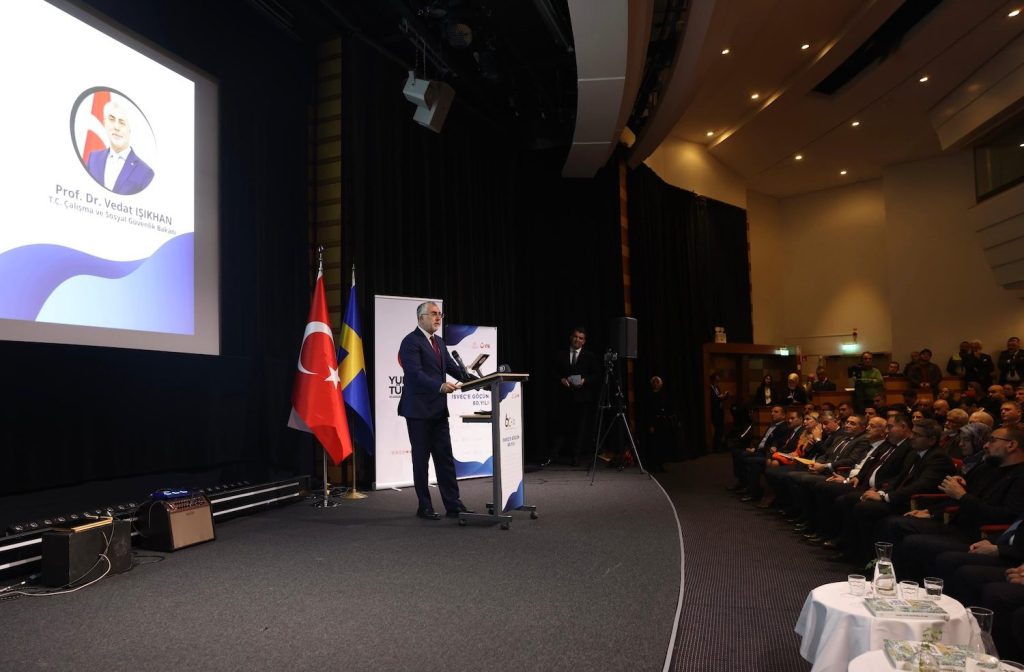 Türkiye ile İsveç arasında asırlar önce başlayan dostluğun, anlamlı yıldönümü için İsveç’te vatandaşları ile buluştuğunu belirten Çalışma ve Sosyal Güvenlik Bakanı Vedat Işıkhan, konuşmasının başında altmış yıl önce, umutla ve cesaretle İsveç topraklarına adım atan; yeni bir hayat kurmak için büyük fedakârlıklarda bulunan ilk kuşak Türk vatandaşlarından ahirete irtihal edenleri rahmetle ve minnetle andı.
