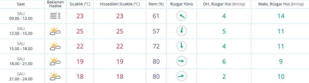 ŞEHİRLERDEN ŞEHİR HABERLERİ İzmir’de güncel hava durumu 4 Kasım 2025 1 den az dakika Meteoroloji Genel Müdürlüğü’nün tahminlerine göre bugün İzmir’de 17 derece çok bulutlu bir hava hakim olacak. Nem oranı ise yüzde 73 seviyelerinde seyredecek. Paylaş FacebookTwitterPinterestWhatsAppTelegram Önceki İçerikEuro ve dolarda son durumSonraki İçerikİzmir’deki nöbetçi eczaneler İLGİLİ HABERLER ŞEHİR HABERLERİ Sürdürülebilir gelecek için yerel dönüşüm buluşması 4 Kasım 2025 ŞEHİR HABERLERİ İzmir’de kent denetçileri dönemi başlıyor 4 Kasım 2025 ŞEHİR HABERLERİ Konak’ın judo takımı ilk turnuvadan madalyalarla döndü 4 Kasım 2025 GÜNDEM Dış ticaret açığı ekimde 7,4 milyar dolar 4 Kasım 2025 OSB’lerde yatırım yerlerine yoğun ilgi 4 Kasım 2025 Meyve fiyat endeksinde yıllık %51,88 artış 4 Kasım 2025 İSO Meclisi’nden Bakü ziyaretinde 190 ikili iş görüşmesi 4 Kasım 2025 Devamını Göster