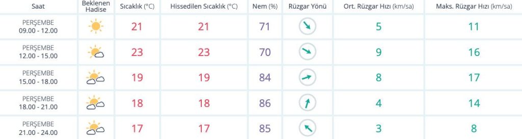 ŞEHİRLERDEN ŞEHİR HABERLERİ İzmir’de güncel hava durumu 6 Kasım 2025 1 den az dakika Meteoroloji Genel Müdürlüğü’nün tahminlerine göre bugün İzmir’de 19 derece parçalı bulutlu bir hava hakim olacak. Nem oranı ise yüzde 62 seviyelerinde seyredecek. Paylaş FacebookTwitterPinterestWhatsAppTelegram Önceki İçerikAile ve Sosyal Hizmetler Bakanlığı’ndan kimsesizler için genelgeSonraki İçerikİzmir nöbetçi eczane listesi İLGİLİ HABERLER ŞEHİR HABERLERİ Bornova’da yeşil dönüşüme akademik destek 6 Kasım 2025 ŞEHİR HABERLERİ Karşıyaka’nın ‘Kültür Rotası’ halkın fikirleriyle şekilleniyor 6 Kasım 2025 ŞEHİR HABERLERİ Başkan Tugay: Her türlü turizm girişimini destekliyorum 6 Kasım 2025 GÜNDEM EBSO’dan Ar-Ge ve girişimcilik ekosistemine destek 6 Kasım 2025 Mustafa V. Koç Spor Ödülü 9. kez sahiplerini buldu 6 Kasım 2025 UİB’in ihracatı ekimde %10 arttı 6 Kasım 2025 Zeytinyağı ihracatında %28 düşüş 6 Kasım 2025 Devamını Göster