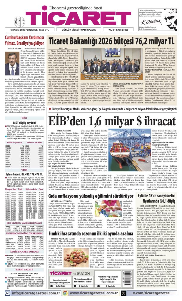 YAZAR, ARŞİV, ÖZEL ÖN SAYFA TİCARET’te bugün 6 Kasım 2025 1 den az dakika Paylaş FacebookTwitterPinterestWhatsAppTelegram Önceki İçerikSavaş Rüzgârları, Trump ve Finansal Gelişmeler -ISonraki İçerikAltın ivmesini yukarı çevirdi İLGİLİ HABERLER ÖN SAYFA TİCARET’te bugün 5 Kasım 2025 ÖN SAYFA TİCARET’te bugün 4 Kasım 2025 ÖN SAYFA TİCARET’te bugün 3 Kasım 2025 GÜNDEM Aile ve Sosyal Hizmetler Bakanlığı’ndan kimsesizler için genelge 6 Kasım 2025 Döviz kurları bugün ne kadar? 6 Kasım 2025 Altın ivmesini yukarı çevirdi 6 Kasım 2025 Savaş Rüzgârları, Trump ve Finansal Gelişmeler -I Tayfun Gözüm 6 Kasım 2025 Devamını Göster