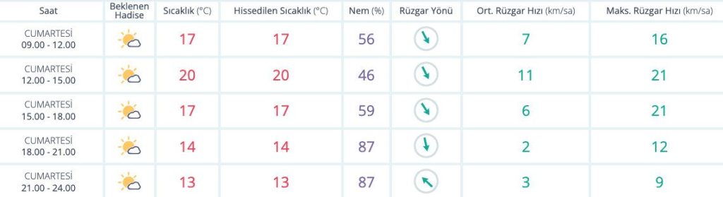 ŞEHİRLERDEN ŞEHİR HABERLERİ İzmir’de bugün hava nasıl? 15 Kasım 2025 1 den az dakika Meteoroloji Genel Müdürlüğü’nün tahminlerine göre bugün İzmir’de 14 derece güneşli bir hava hakim olacak. Gün içerisinde yağış beklenmiyor. Paylaş FacebookTwitterPinterestWhatsAppTelegram Önceki İçerik“Sosyal Konut Projesi’ne yaklaşık 3 milyon başvuru oldu”Sonraki İçerikİzmir’de günün nöbetçi eczaneleri İLGİLİ HABERLER ŞEHİR HABERLERİ Narlıdere’de esnafın ihtiyaçları yerinde tespit ediliyor 15 Kasım 2025 ŞEHİR HABERLERİ İzmir’deki vapur iskeleleri yenilenecek 15 Kasım 2025 ŞEHİR HABERLERİ İzmir’in çöpü Manisa’ya gönderilecek 15 Kasım 2025 GÜNDEM EGİFED’den Nazilli’de bölgesel iş birliği 15 Kasım 2025 Doğal afetlerin maliyeti 2,3 trilyon dolar 15 Kasım 2025 TV8 TV halka arz ediliyor 15 Kasım 2025 Türkiye ve ABD, yapay zekâ yatırımlarında farklı yol izliyor 15 Kasım 2025 Devamını Göster