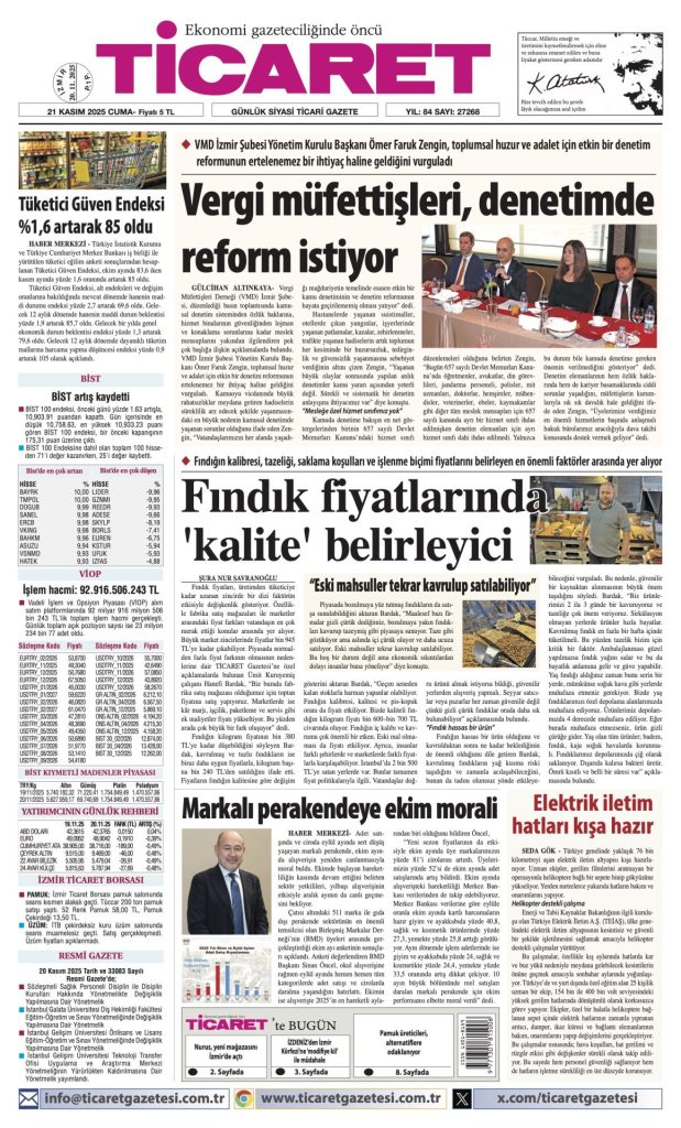 YAZAR, ARŞİV, ÖZEL ÖN SAYFA TİCARET’te bugün 21 Kasım 2025 1 den az dakika Paylaş FacebookTwitterPinterestWhatsAppTelegram Önceki İçerikSelanik İLGİLİ HABERLER ÖN SAYFA TİCARET’te bugün 20 Kasım 2025 ÖN SAYFA TİCARET’te bugün 19 Kasım 2025 ÖN SAYFA TİCARET’te bugün 18 Kasım 2025 GÜNDEM Selanik Can Baydarol 21 Kasım 2025 Fındığın kalitesi fiyatları belirliyor 21 Kasım 2025 İş Cinayetleri Artık Katliamlara Mı Dönüştü? Dr. Mustafa Torun 21 Kasım 2025 Merkez Bankası rezervleri 187 milyar 432 milyon dolar oldu 20 Kasım 2025 Devamını Göster
