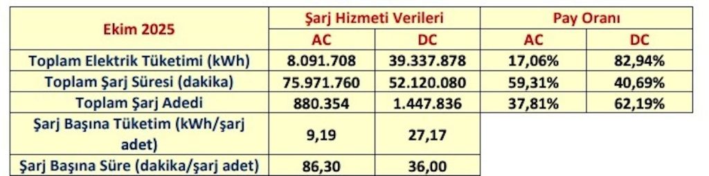 Tüketim verilerine göre coğrafi dağılımda İstanbul açık ara öne çıktı. Ekim 2025’te en yüksek elektrik tüketimi 14 bin 438 MWh ile İstanbul’da gerçekleşti. İstanbul, toplam tüketim içinde yüzde 30,25 ile en yüksek payı alırken, onu sırasıyla Ankara, İzmir ve Bursa izledi. Marka sıralamasında ise en yüksek elektrik tüketimi 11 bin 292 MWh ile Trugo tarafından yapıldı. Trugo’yu 8 bin 463 MWh ile Zes takip ederken, Eşarj, Astor ve Tesla da ilk beş marka arasında yer aldı.