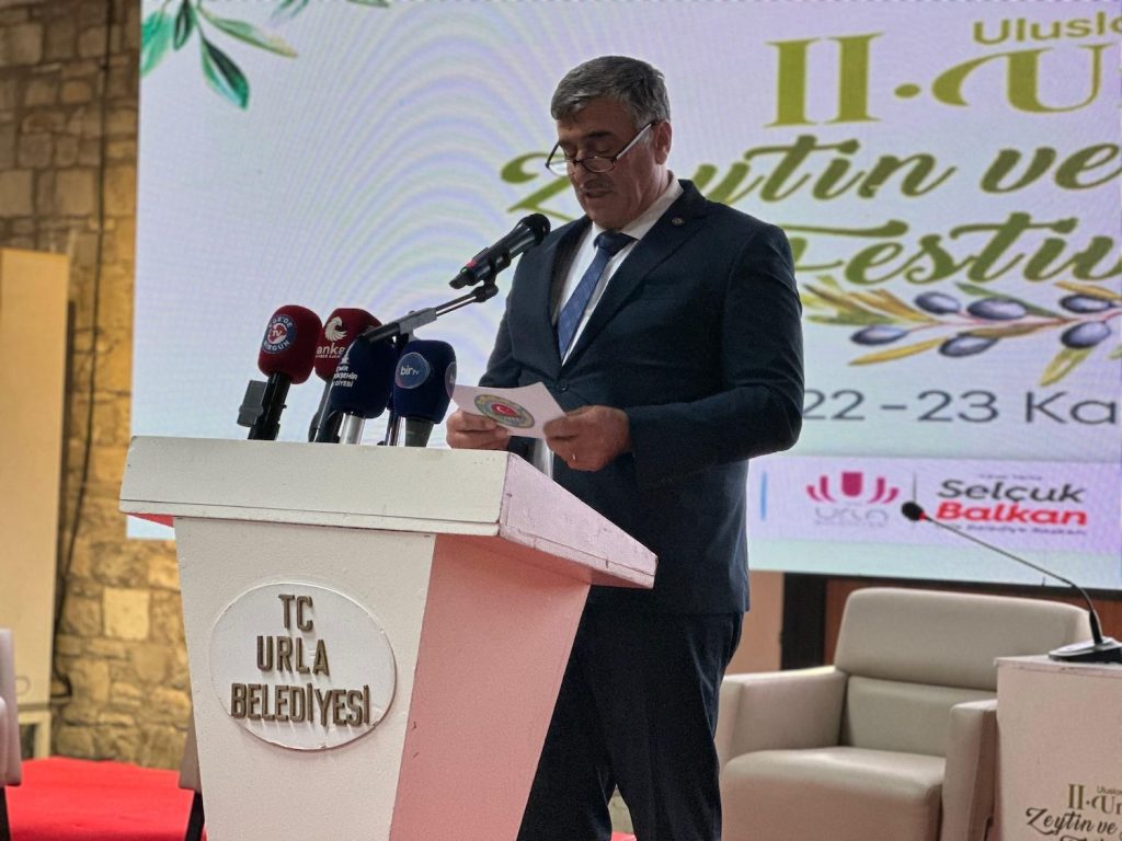 Zeytinin tarihsel yolculuğunun ege bölgesinde başladığını söyleyen Urla Belediye Başkanı Selçuk Balkan,Dünyanın bilinen ilk zeytinyağı işliğinin burada bulunması da bu kadim hafızanın en güçlü kanıtlarından biri. Bu topraklarda başlayan hikâye, bu festivalde sanatla buluşacak, bilimle güçlenecek, gastronomiyle zenginleşecek” dedi. Tarımsal üretimde sürdürülebilirliği arttırma bilinciyle hareket ettiklerini belirten Balkan, “Biliyoruz ki üretici güçlendikçe gastronomi turizmi de zenginleşiyor. Tarımsal faaliyetlerimiz mutfağımızı çeşitlendirdiği sürece ilçemizde gastronomi turizmi gelişmeye devam ediyor. Bu noktada ‘Gastrofarm Urla’ hem sürdürülebilir tarımsal üretimin devamı hem de gastronomi turizminin güçlenmesi için oluşturduğumuz çok önemli bir konsept. Son 23 yılda, zeytinliklerin imara, sanayiye ve madenciliğe açılması için tam 10 kez girişimde bulunuldu. 11’nci girişimde ise ne yazık ki zeytin yasasında değişiklik, Meclis’te 56 oy farkla kabul edildi. Bu süreç, bizlerin toprağa ve bu kadim ağaca duyduğu sorumluluğu daha da artırıyor” ifadelerinde bulundu.