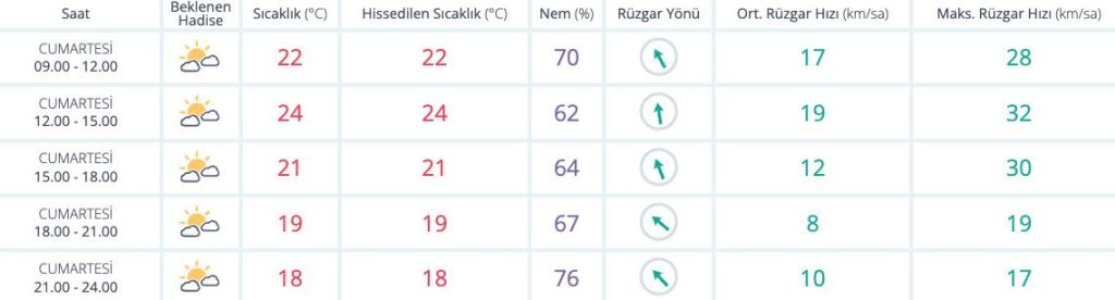 ŞEHİRLERDEN ŞEHİR HABERLERİ İzmir’de bugün hava nasıl? 22 Kasım 2025 1 den az dakika Meteoroloji Genel Müdürlüğü’nün tahminlerine göre bugün İzmir’de 19 derece çok bulutlu bir hava hakim olacak. Nem oranı ise yüzde 68 seviyelerinde seyredecek. Paylaş FacebookTwitterPinterestWhatsAppTelegram Önceki İçerikTİCARET’te bugünSonraki İçerikİzmir’de günün nöbetçi eczaneleri İLGİLİ HABERLER ŞEHİR HABERLERİ İzmir Büyükşehir Belediyesi, Çin’e model oldu 22 Kasım 2025 ŞEHİR HABERLERİ İzmir’de bugün hangi ilçelerde sular kesilecek? 22 Kasım 2025 ŞEHİR HABERLERİ İzmir’de günün nöbetçi eczaneleri 22 Kasım 2025 GÜNDEM İzmir Büyükşehir Belediyesi, Çin’e model oldu 22 Kasım 2025 Türkiye’de çocuk işçiliği 3,5 kat azaldı 22 Kasım 2025 AVM cirolarında sınırlı daralma 22 Kasım 2025 THBB: İnşaat sektörü beklenen performanstan uzak 22 Kasım 2025 Devamını Göster