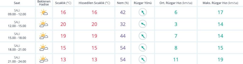 ŞEHİRLERDEN ŞEHİR HABERLERİ İzmir’de bugün hava nasıl? 25 Kasım 2025 1 den az dakika Meteoroloji Genel Müdürlüğü’nün tahminlerine göre bugün İzmir’de 9 derece az bulutlu bir hava hakim olacak. Yağış beklenmezken nem oranı ise yüzde 61 olacak. Paylaş FacebookXPinterestWhatsAppTelegram Önceki İçerikİZBAN’da indirim, ulaşımda “genç tarife” dönemiSonraki İçerikÇeyrek altın ne kadar oldu? İLGİLİ HABERLER ŞEHİR HABERLERİ Bornova’da “Dijital Torun” köprüsü 4 Nisan 2026 ŞEHİR HABERLERİ İzmir’de konut krizine neşter 4 Nisan 2026 ŞEHİR HABERLERİ Doğaltaşın kalbi İzmir’de atacak: Marble için hazırlıklar başladı 4 Nisan 2026 GÜNDEM Gülsin Onay’ın notaları nisan ayında 3 ülkeye ulaşacak 4 Nisan 2026 Salomon Çeşme Yarı Maratonu Ege’nin ritmini koşuya taşıyacak 4 Nisan 2026 Bornova’da “Dijital Torun” köprüsü 4 Nisan 2026 Akdeniz’e 26,9 milyar TL’lik yatırım, tesis sayısı 6,5 kat arttı 4 Nisan 2026 Devamını Göster