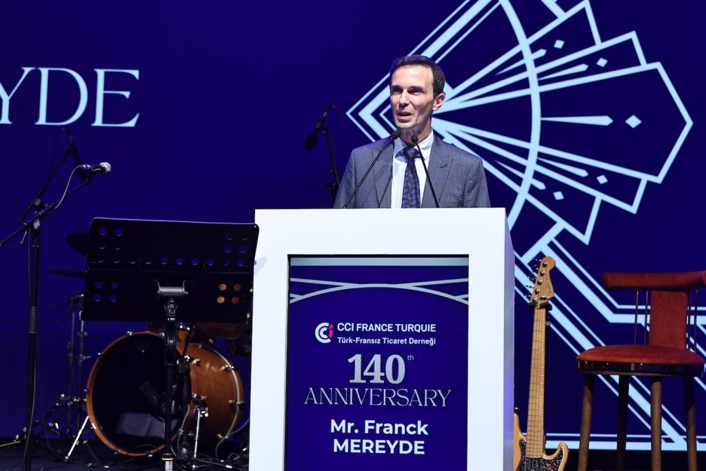 Gala gecesinde konuşan Türk-Fransız Ticaret Derneği Başkanı ve TAV Havalimanları İcradan Sorumlu Yönetim Kurulu Üyesi Franck Mereyde, Fransız firmalarının Türkiye’de köklü bir geçmişe sahip olduğunu belirterek, bugün ülkede faaliyet gösteren Fransız ve Türk-Fransız ortaklıklı şirketlerin yaklaşık 400 bin doğrudan ve dolaylı istihdam sağladığını kaydetti. Mereyde, “Bu durum, Türkiye’ye ve Türkiye’nin geleceğine duyulan güveni açıkça gösteriyor. 2020–2024 yılları arasında toplam 4 milyar avro yatırım yapan bu firmalar, önümüzdeki üç yıl içinde 5 milyar avro daha yatırım yapmayı planlanıyor” ifadelerini kullandı.