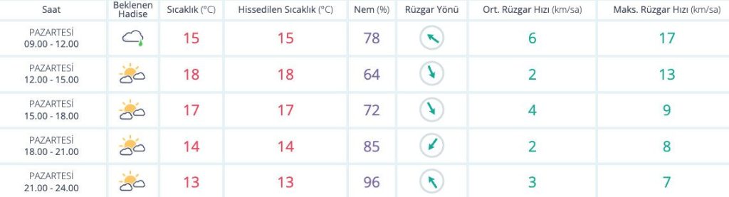 ŞEHİRLERDEN ŞEHİR HABERLERİ İzmir’de bugün hava nasıl? 1 Aralık 2025 1 den az dakika Meteoroloji Genel Müdürlüğü’nün tahminlerine göre bugün İzmir’de 13 derece parçalı bulutlu bir hava hakim olacak. Paylaş FacebookTwitterPinterestWhatsAppTelegram Önceki İçerikYeni haftada gözler enflasyon rakamlarındaSonraki İçerikİzmir’de günün nöbetçi eczaneleri İLGİLİ HABERLER ŞEHİR HABERLERİ İzmir’de günün nöbetçi eczaneleri 1 Aralık 2025 ŞEHİR HABERLERİ Çeşme Belediyesinden olağanüstü yağışa olağanüstü müdahale 29 Kasım 2025 ŞEHİR HABERLERİ İzmir’de 7 ilçede su kesintisi olacak 29 Kasım 2025 GÜNDEM İzmir’de günün nöbetçi eczaneleri 1 Aralık 2025 Yeni haftada gözler enflasyon rakamlarında 1 Aralık 2025 Baharat sektöründe güçler birleştirildi 1 Aralık 2025 TİCARET’te bugün 1 Aralık 2025 Devamını Göster