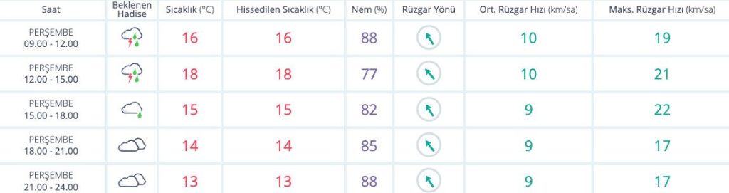 ŞEHİRLERDEN ŞEHİR HABERLERİ İzmir’de güncel hava durumu 4 Aralık 2025 1 den az dakika Meteoroloji Genel Müdürlüğü tarafından açıklanan tahminlere göre bugün İzmir’de 13 derece çok bulutlu bir hava hakim olacak. Gün içerisinde ise yağış beklenmiyor. Paylaş FacebookTwitterPinterestWhatsAppTelegram Önceki İçerikTürk kadınının seçme seçilme hakkının 91. yılıSonraki İçerikİzmir’de günün nöbetçi eczaneleri İLGİLİ HABERLER ŞEHİR HABERLERİ İzmir’in 8 ilçesinde sular kesilecek 4 Aralık 2025 ŞEHİR HABERLERİ İzmir’de günün nöbetçi eczaneleri 4 Aralık 2025 ŞEHİR HABERLERİ Kültürpark’a yeni yıl ruhu geldi 3 Aralık 2025 GÜNDEM İzmir’in 8 ilçesinde sular kesilecek 4 Aralık 2025 İzmir’de günün nöbetçi eczaneleri 4 Aralık 2025 Türk kadınının seçme seçilme hakkının 91. yılı 4 Aralık 2025 Dövizde istikrarlı yükseliş 4 Aralık 2025 Devamını Göster