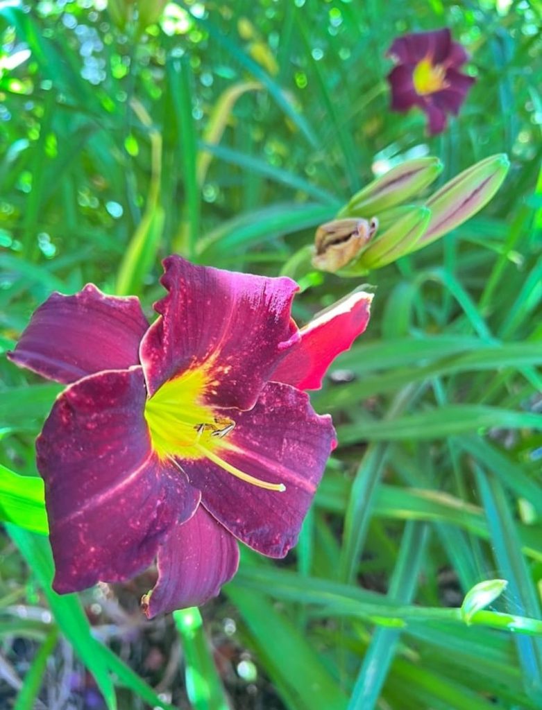 Bu nedenle bahçecilikte bütün dünyada dişi ağaçlar ekildiğinden dünyadaki Ginkgo sayısı tehlike altında olabilir. Beraberinde morumtrak renkte bir gündüz güzeli (Hemerocallis) var.