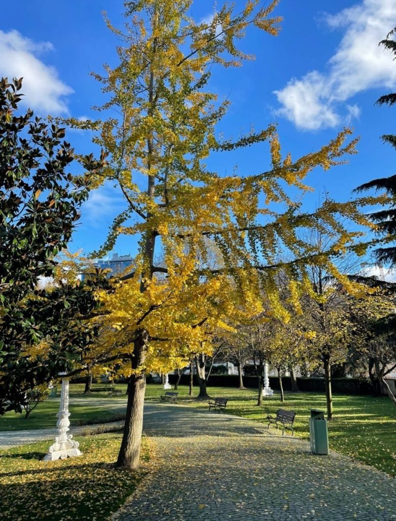 Arkasından İstanbul Ihlamur Kasrından Gynko ağacını ve yukarıda adını anmasak da, ölü çiçeklerin kesilerek atılmasının hem estetik hem de çiçek sayısını artırmak açısından önemli olduğu bir yıldız çiçeğini göreceksinizi.