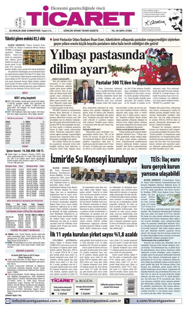 YAZAR, ARŞİV, ÖZEL ÖN SAYFA TİCARET’te bugün 20 Aralık 2025 1 den az dakika Paylaş FacebookTwitterPinterestWhatsAppTelegram Önceki İçerikGüç Zanaat İLGİLİ HABERLER ÖN SAYFA TİCARET’te bugün 19 Aralık 2025 ÖN SAYFA TİCARET’te bugün 18 Aralık 2025 ÖN SAYFA TİCARET’te bugün 17 Aralık 2025 GÜNDEM Güç Zanaat Demir Uzun 20 Aralık 2025 Yılbaşı pastasında dilim ayarı 20 Aralık 2025 Gün sonu döviz kuru 19 Aralık 2025 Gün sonu altın fiyatları 19 Aralık 2025 Devamını Göster