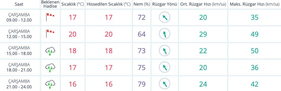 ŞEHİRLERDEN ŞEHİR HABERLERİ İzmir’de bugün hava nasıl? 7 Ocak 2026 1 den az dakika Meteoroloji Genel Müdürlüğü’nün tahminlerine göre bugün İzmir’de 16 derece çok bulutlu bir hava hakim olacak. Yer yer yağış beklenirken nem oranı yüzde 62 olacak. Paylaş FacebookXPinterestWhatsAppTelegram Önceki İçerikDolar/TL’de yükselişSonraki İçerikİzmir’de günün nöbetçi eczaneleri İLGİLİ HABERLER ŞEHİR HABERLERİ Uluslararası Fotoğraf Yarışması’nda kazananlar belli oldu 11 Nisan 2026 ŞEHİR HABERLERİ Torbalı’da kağıt fabrikasına karşı direniş büyüyor 10 Nisan 2026 ŞEHİR HABERLERİ Müziğin birleştiren gücü İzmir’de yankılanacak 10 Nisan 2026 GÜNDEM İş dünyasında rekabet kuralları değişiyor 11 Nisan 2026 Bergama, Mitoloji Film Festivali’ni konuk ediyor 11 Nisan 2026 Gıda israfı %20 azalırsa açlık ortadan kalkacak 11 Nisan 2026 Kruvaziyerde yolcu hedefi 3 milyon 11 Nisan 2026 Devamını Göster