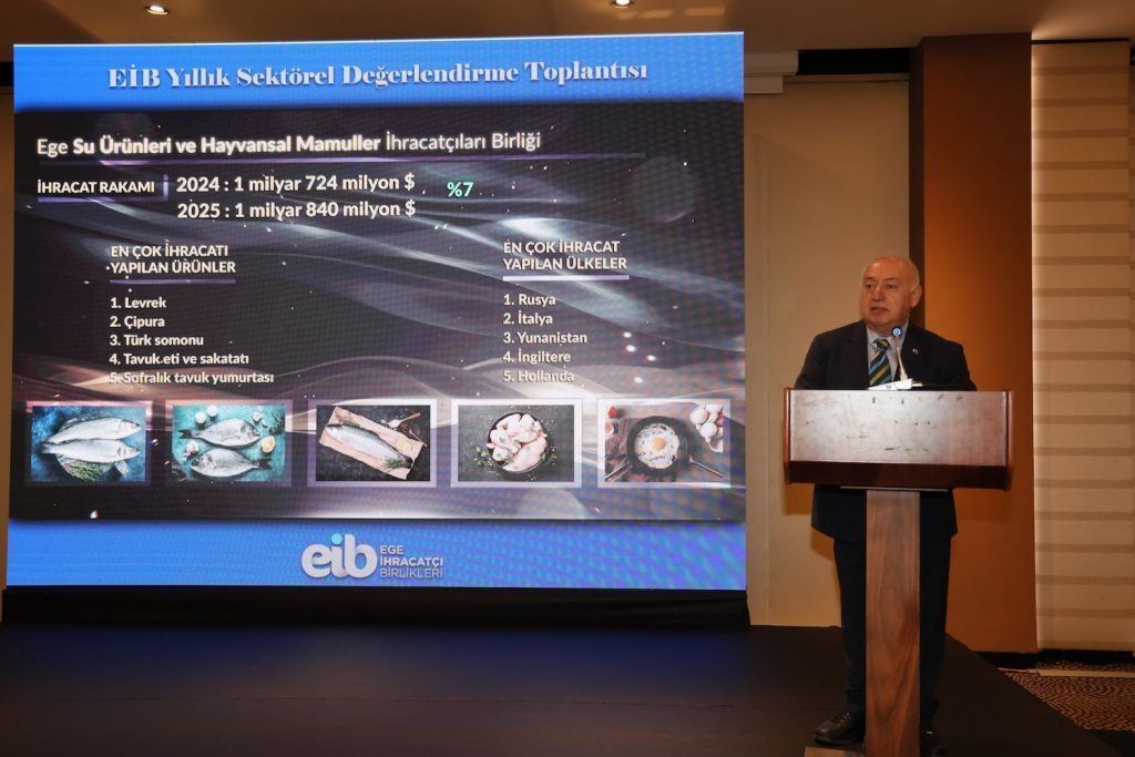 Ege Su Ürünleri ve Hayvansal Mamuller İhracatçıları Birliği Başkanı Bedri Girit ise “Sektör olarak dünyanın protein açığını dengelemeye çalışıyoruz. Ege Su Ürünleri ve Hayvansal Mamuller İhracatçıları Birliği olarak ihracatımızda yüzde 7’lik bir artış söz konusu. Türkiye hayvansal üretim için oldukça iyi bir habitata sahip. Bu nedenle üretime odaklanıyoruz. Bağırsak ihracatında da yaklaşık 100 milyon dolarlık bir potansiyelimiz var. Bunun önemli önemli bir kısmı estetik ameliyatlar için ihraç ediliyor. Sektörde parlayan yıldızlarımız var ve Türk somonu bunlardan biri. Sektör olarak Türkiye genelinde 4 milyar dolar ihracatımız söz konusu” dedi. Sektörün Denetim ve kota sistemine takıldığını ifade eden Girit, “Şu an aktif olarak yumurta, tereyağı ve süt tozunda kota sistemi var. Sadece sofralık yumurtadan örnek verirsem geçen seneye göre yüzde 50 üzerinde gerideyiz” dedi.
