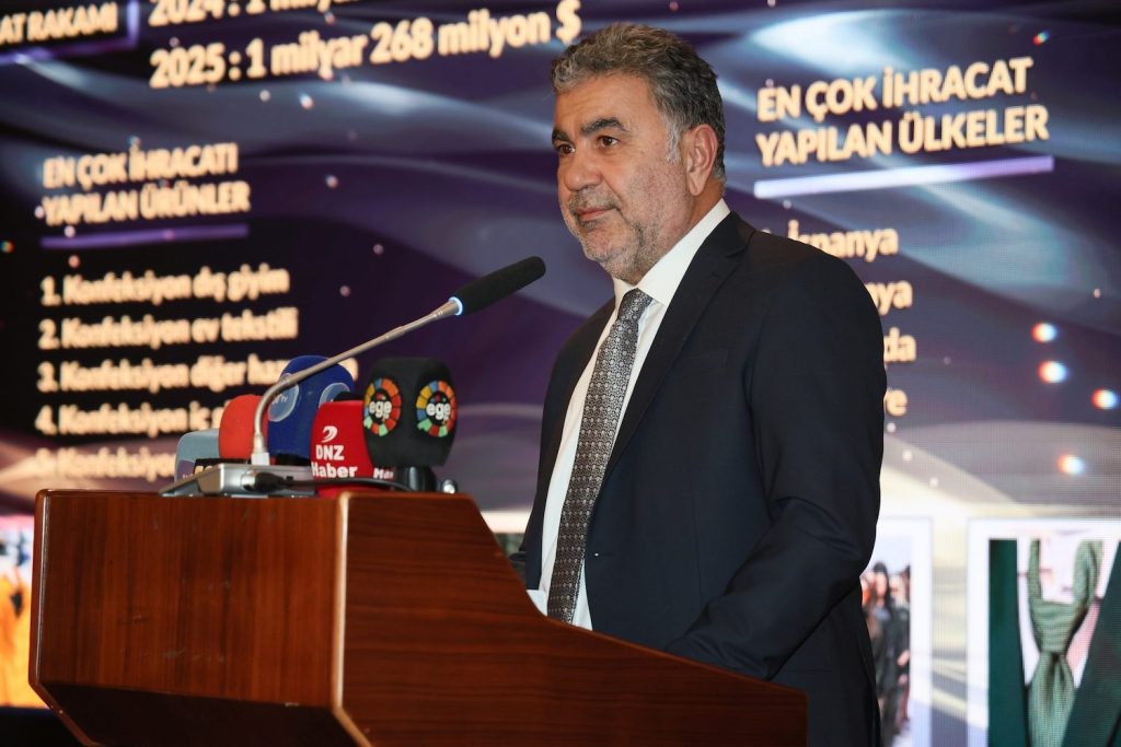 Ege Hazırgiyim ve Konfeksiyon İhracatçıları Birliği Başkanı Burak Sertbaş da konuşmasında şunları söyledi: “Hazır giyim ve konfeksiyon sektörü, uzun zamandan beri Türkiye’nin lokomotif sektörlerinden biri. Ama ne yazık ki son dönemde Türkiye’nin dördüncü büyük ihracat sektörü haline dönüştü. Çeşitli sebepleri var. Küresel daralmalar, artan işçilik ücretleri ve üretim maaliyetleri, enflasyonla doğru orantılı artmayan kur. Finansmana erişmekte yaşanan zorluklar. Yıl sonu itibarıyla Türkiye hazır giyim ihracatı, bir önceki yıla göre yüzde 6 düşüşle 16,7 milyar dolar olarak gerçekleşti. Hazır giyim sektörü deyince hep katma değersiz üretim yaptığımızdan bahsedilir ama hazır giyim katma değerli üretim yapıyor. Bugün Türkiye ihracat ortalaması 1.6 dolarken, hazır giyimin ortalama ihraç birim fiyatı 16,21 dolar civarında. Hatta EHKİB ortalama ihraç birim fiyatı 21,19 dolar. İstihdamı koruyarak üretimden kaçmadan sektörün sesine kulak vermek ve bu süreci yönetmek zorundayız.”