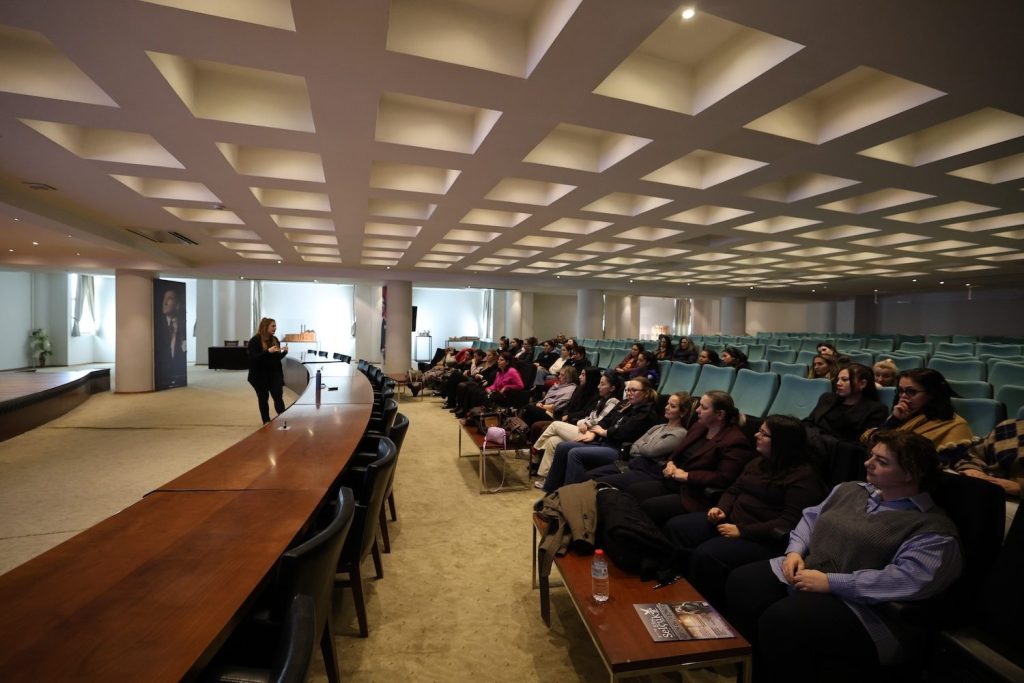 Eğitim programının ikinci bölümünde Psikolog Burçin Çoltu tarafından “Kanserin Psikososyal Boyutu” başlığı altında bir sunum gerçekleştirildi. Sunumda; tanıyla ilk karşılaşma süreci, hastalığın yaşam kalitesine etkisi, beden imajı ve benlik saygısı konuları ele alınırken, duygusal dalgalanmalarla baş etme yolları hakkında katılımcılara bilgiler verildi.