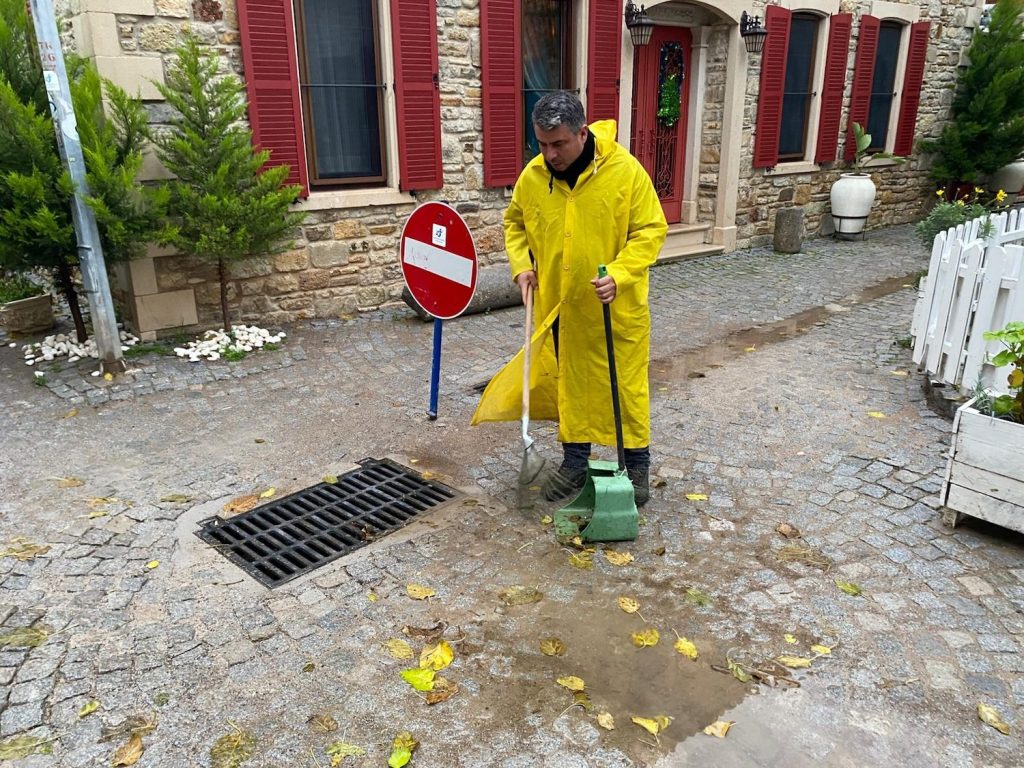 Şiddetli yağışla birlikte rüzgârın sürüklediği yaprakların yağmur suyu kanallarını tıkamaması için ekipler yoğun mesai harcıyor. Özellikle çarşı merkezi ve ara sokaklarda tıkanan mazgallara anında müdahale edilerek biriken suların tahliyesi sağlanıyor. Ekipler, süpürge araçları ve el yordamıyla ızgaraların üzerini temizleyerek suyun akışını normale döndürüyor. Fırtınanın etkisiyle kırılan veya yollara savrulan ağaç dalları, ulaşımda aksama yaşanmaması adına iş makineleri ve kamyonlarla süratle bölgeden uzaklaştırılıyor. Park ve Bahçeler birimiyle koordineli yürütülen çalışmalarda, yaya ve araç trafiği için risk oluşturan devrilmiş ağaç parçaları vinçli araçlarla toplanarak güvenlik sağlanıyor.