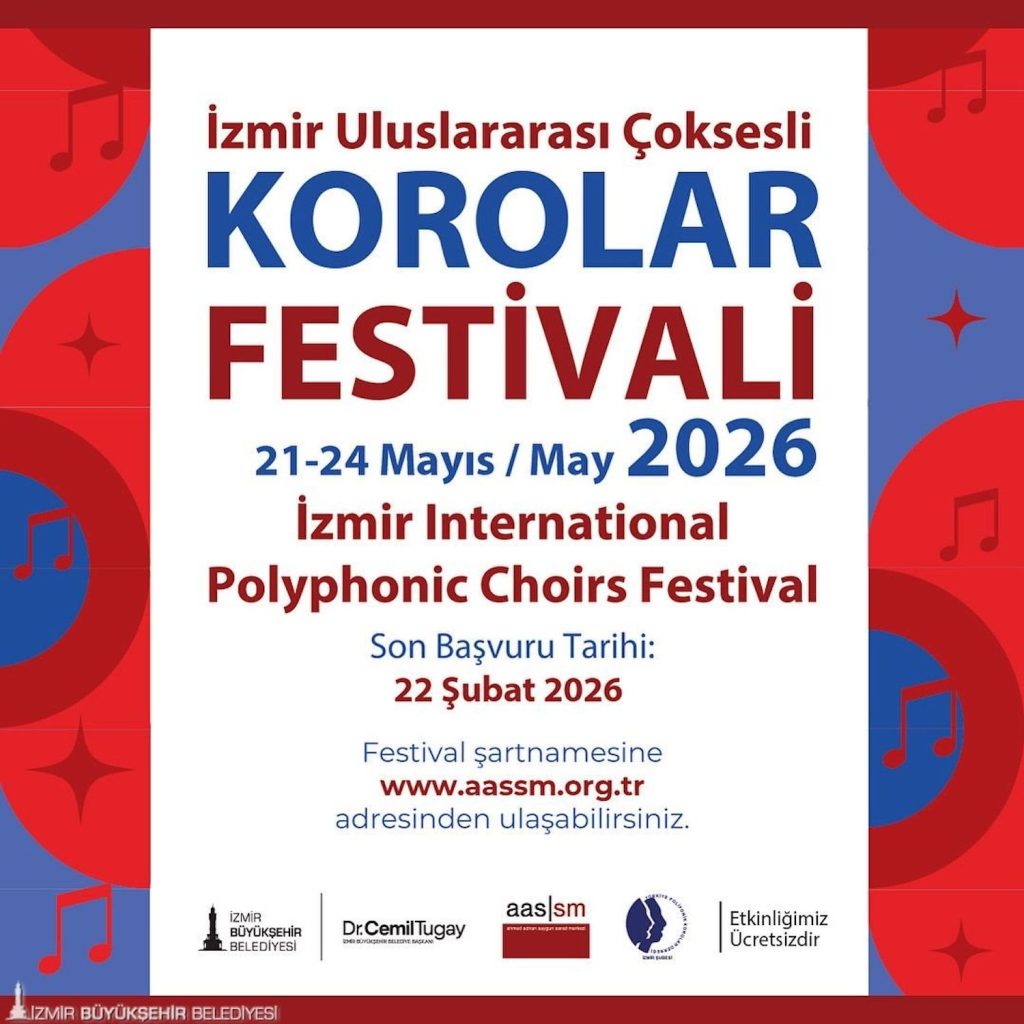 İzmir Büyükşehir Belediyesi ile Türkiye Polifonik Korolar Derneği İzmir Şubesi iş birliğinde 21–24 Mayıs tarihleri arasında düzenlenecek İzmir Uluslararası Çoksesli Korolar Festivali için başvurular başladı. Festivale katılmak isteyen korolar için son başvuru tarihi 22 Şubat olarak belirlendi. İzmir Büyükşehir Belediyesi, Türkiye Polifonik Korolar Derneği İzmir Şubesi iş birliğiyle 5. İzmir Uluslararası Çoksesli Korolar Festivali’ni düzenlemeye hazırlanıyor. 21–24 Mayıs tarihleri arasında Ahmed Adnan Saygun Sanat Merkezi’nde gerçekleştirilecek festival, çoksesli koro müziği aracılığıyla ulusal müziğimizi evrensel bir perspektifle buluşturacak. Koro şefleri ve müzik eğitimcileri arasında ilham ve etkileşimi artırmayı, aynı zamanda sosyal bağları güçlendirmeyi amaçlayan festivalde, Türk ve dünya koro repertuvarından seçilen nitelikli eserler müzikseverlerle buluşacak. Son başvuru tarihi 22 Şubat olan festivalin başvuru koşulları ve festival şartnamesine web sitesinden ulaşılabiliyor.
