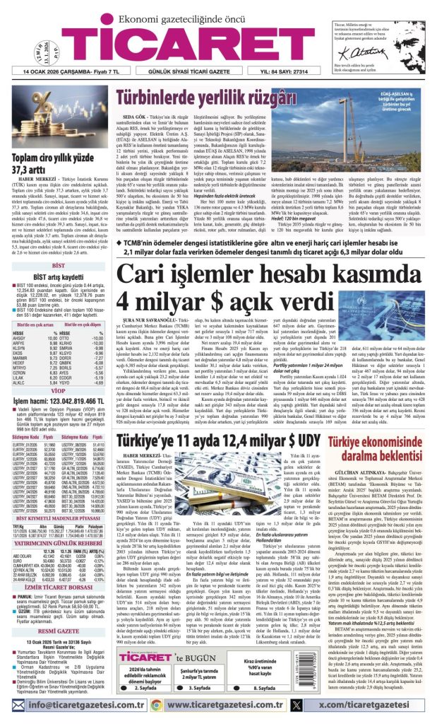 YAZAR, ARŞİV, ÖZEL ÖN SAYFA TİCARET’te bugün 14 Ocak 2026 1 den az dakika Paylaş FacebookTwitterPinterestWhatsAppTelegram Önceki İçerikTrump cehaleti ve sarhoşluğu… İLGİLİ HABERLER ÖN SAYFA TİCARET’te bugün 13 Ocak 2026 ÖN SAYFA TİCARET’te bugün 12 Ocak 2026 ÖN SAYFA TİCARET’te bugün 10 Ocak 2026 GÜNDEM Trump cehaleti ve sarhoşluğu… İskender Odabaşoğlu 14 Ocak 2026 Sanayide Tasarrufun Yolu Enerji Verimliliğinden Geçiyor Ece Bozkurt Orhan 14 Ocak 2026 Basın çalışanlarına sigortada indirim 13 Ocak 2026 AB cari hesap fazlası 57,3 milyar euro 13 Ocak 2026 Devamını Göster