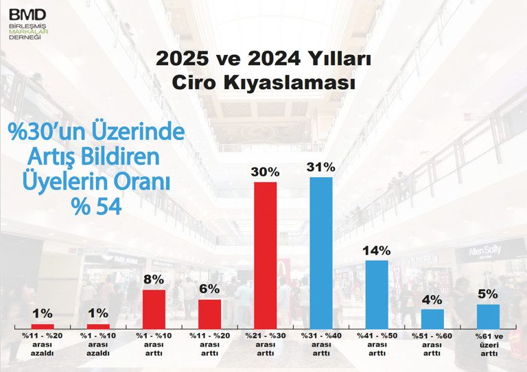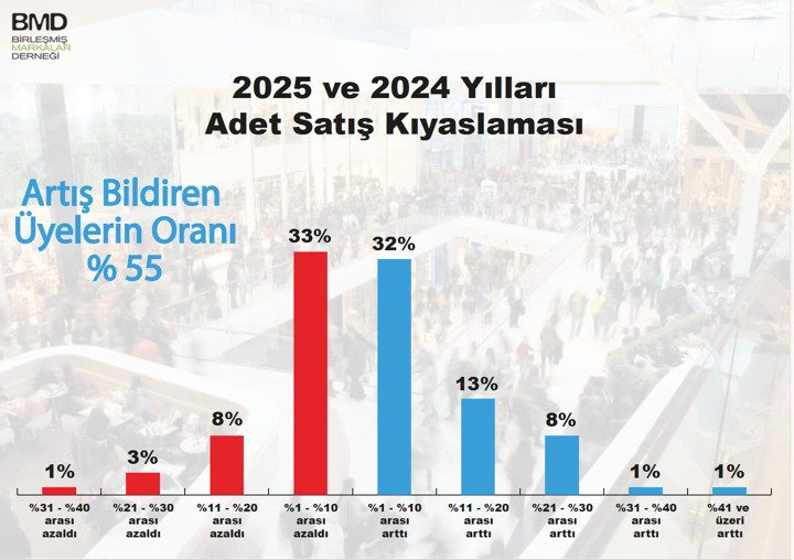 Çatısı altındaki 512 marka ile gıda dışı perakende sektörünün en önemli temsilcisi olan BMD, üyeleri arasında gerçekleştirdiği aralık ayı anketinin sonuçlarını açıkladı. Anketi değerlendiren BMD Başkanı Sinan Öncel, indirim kampanyalarına ve yılbaşı alışverişine rağmen aralık ayında adet satışı ve ciroda çok sınırlı bir artış olduğuna dikkat çekti. Öncel, kasım ile karşılaştırıldığında aralık ayında üyelerin yüzde 52’sinin adet satışlarını, yüzde 59’unun da cirolarını arttırdığını bildirdi. Markaların 2025’te adet satışlarını ve cirolarını korumak için nakit yönetimine odaklandığını belirten Öncel, maliyetleri düşürecek hamlelerin yapılmaması halinde 2026’nın daha da zor geçeceğini vurguladı.