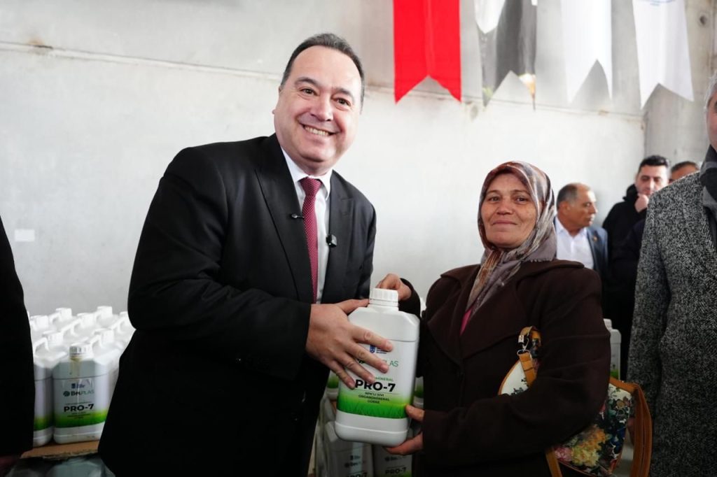 Konuşmaların ardından Başkan Besim Dutlulu, kadın üreticiler başta olmak üzere destekten yararlanan çiftçilere sıvı gübre ve aminoasitleri bizzat teslim etti. Üreticiler, sağlanan destekten duydukları memnuniyeti dile getirerek Manisa Büyükşehir Belediyesi’ne teşekkür etti. Proje kapsamında, toplam arazi varlığı 50 dekarın altında olan ve 20 dekar altı meyve bahçesi bulunan üreticiler destekten yararlanıyor. Dağıtılan yüzde 100 hibeli destek paketinde organik madde yüzde 20, Azot yüzde 7, Üre yüzde 7, Fosfor yüzde 7 içeren sıvı organomineral gübre ile bitki gelişimini destekleyen hayvansal menşeili aminoasitler yer alıyor.