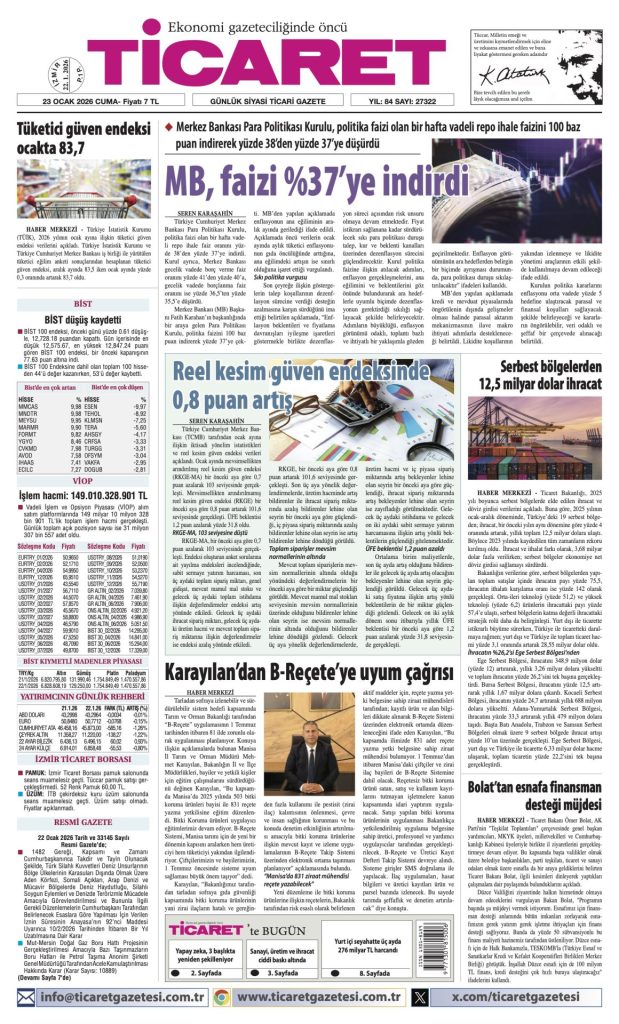 YAZAR, ARŞİV, ÖZEL ÖN SAYFA TİCARET’te bugün 23 Ocak 2026 1 den az dakika Paylaş FacebookTwitterPinterestWhatsAppTelegram Önceki İçerikÇin’in ekonomisi nereye gidiyor?Sonraki İçerikAltın yine rekor seviyede İLGİLİ HABERLER ÖN SAYFA TİCARET’te bugün 22 Ocak 2026 ÖN SAYFA TİCARET’te bugün 21 Ocak 2026 ÖN SAYFA TİCARET’te bugün 20 Ocak 2026 GÜNDEM Eximbank’tan 160 bin ihracatçıya alıcı kredisi 23 Ocak 2026 Ege ihracatının yıldızlarının gurur gecesi 23 Ocak 2026 Yasa dışı bahsin finans ayağına darbe 23 Ocak 2026 “Gümrük Birliği’ne acil revizyon şart” 23 Ocak 2026 Devamını Göster