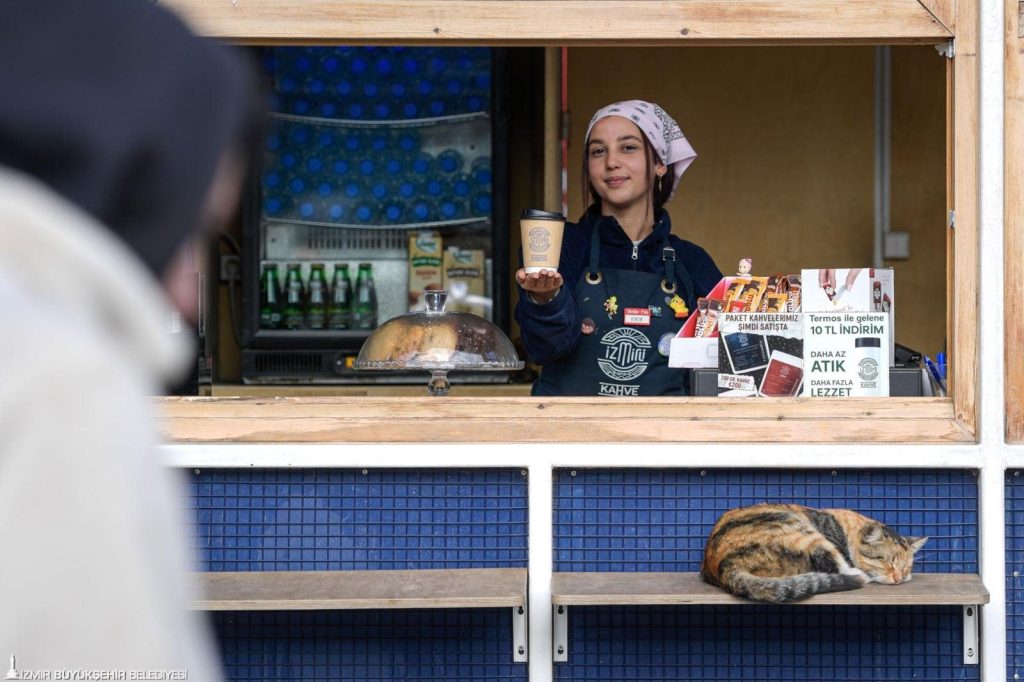 İzmirli Kahve’de barista olarak görev yapan Kemal Kula, yurttaşların markayı sahiplendiğini belirterek hizmetin her geçen gün daha da yaygınlaştığını söyledi. Kula, “Çalışmalarımız oldukça iyi gidiyor. Şu anda 12 noktada hizmet veriyoruz ve bu sayıyı artırmak için çalışmalarımız sürüyor. Ulaşılabilir olmak adına fiyatlarımızı olabildiğince uygun tutarken, hizmet kalitesini en üst seviyede sunmaya özen gösteriyoruz. Menümüze yeni ürünler ekliyoruz; kış çaylarımız bulunuyor ve yanında bal ikram ediyoruz. Ayrıca paket kahve satışına da başladık. Misafirlerimiz kendi termoslarını getirdiklerinde 10 lira indirimden yararlanabiliyor. Bu uygulamayla geri dönüşüme katkı sunmayı, doğayı ve çevreyi korumayı amaçlıyoruz” dedi.