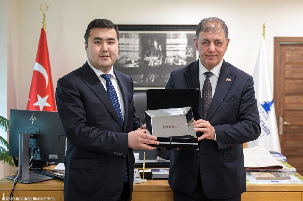 Kırgız Cumhuriyeti İstanbul Başkonsolosu Chyngyz Toktobekoviç, İzmir Büyükşehir Belediye Başkanı Dr. Cemil Tugay’ı makamında ziyaret etti. Kardeş şehir olan İzmir ve Bişkek arasındaki ilişkiler başta olmak üzere ticari ve turistik iş birliği olanakları konuşuldu. Başkan Tugay, Kırgız heyetini, 21 Mart’ta İzmir’de yapmayı planladıkları bahar bayramı kutlamalarına davet etti. Tugay aynı zamanda Kırgız yazar Cengiz Aytmatov’un adını İzmir’de bir kütüphanede ölümsüzleştirmek istediklerini söyledi.
