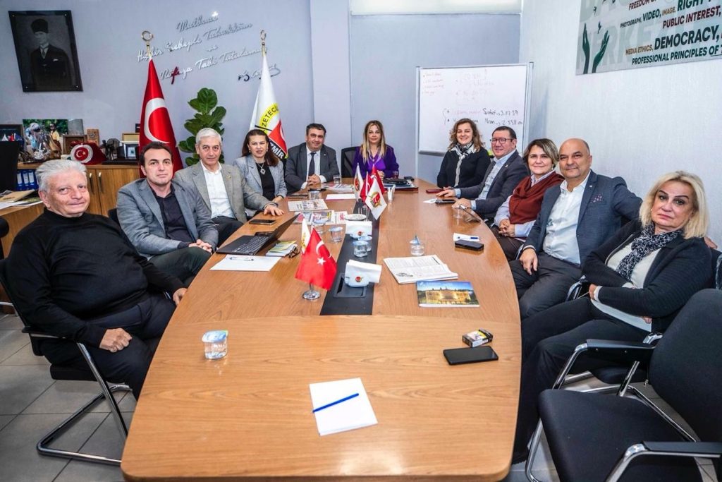 İzmir Gazeteciler Cemiyeti Başkanı Dilek Gappi, Başkan Yardımcısı Mehlika Gökmen, Genel Sekreter Reşat Yörük, Sayman Tolga Albay ve Yönetim Kurulu Üyesi Esat Erçetingöz’ün ev sahipliğindeki ziyarette; Ekonomi Muhabirleri Derneği İzmir Şubesi Başkanı Murat Demircan, Başkan Yardımcıları Seda Gök, Mete Tamer Omur, Genel Sekreter Kadir Kemaloğlu, Sayman Nihal Özken, Denetim Kurulu Üyesi Halime Büyükyüksel yer aldı.