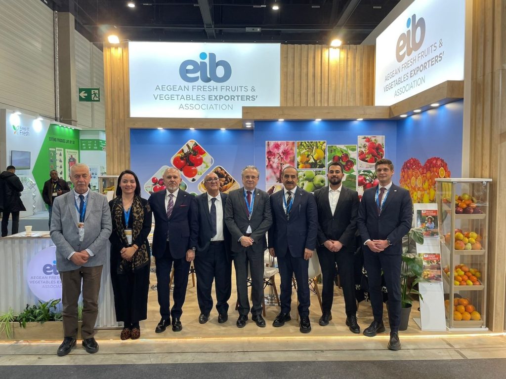 Ege Yaş Meyve Sebze İhracatçıları Birliği standını T.C. Berlin Büyükelçisi Gökhan Turan, T.C. Berlin Ticaret Başmüşaviri Devran Ayık ve T.C. Berlin Ticaret Müşaviri Mehmet Sefa Saral ziyaret etti. Fruit Logistica Fuarı’nda; Ege Yaş Meyve Sebze İhracatçıları Birliği Yönetim Kurulu Başkanı Hayrettin Uçak, Yönetim Kurulu Başkan Yardımcısı Cengiz Balık, Yönetim Kurulu Üyeleri Sadık Demircan ve Vural Güleç, EYMSİB Yaş Meyve Sebze Komitesi Başkanı Makbule Çiftçi, Ege İhracatçı Birlikleri Genel Sekreteri İ. Cumhur İşbırakmaz, Türkiye’nin yaş meyve sebze ihracatının artması için mesai verdiler.