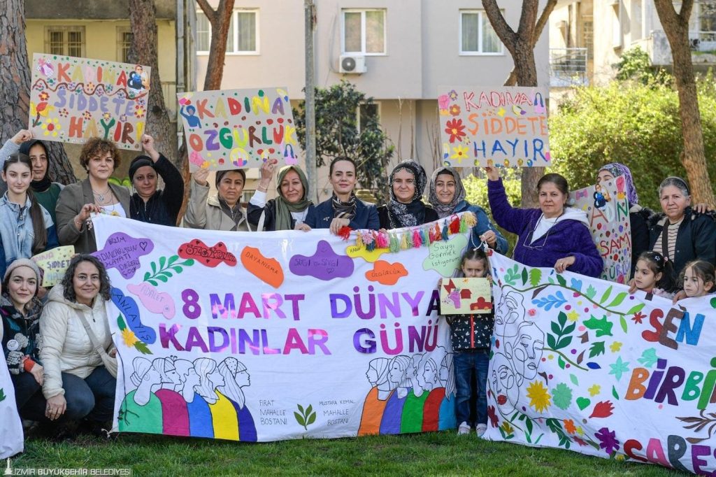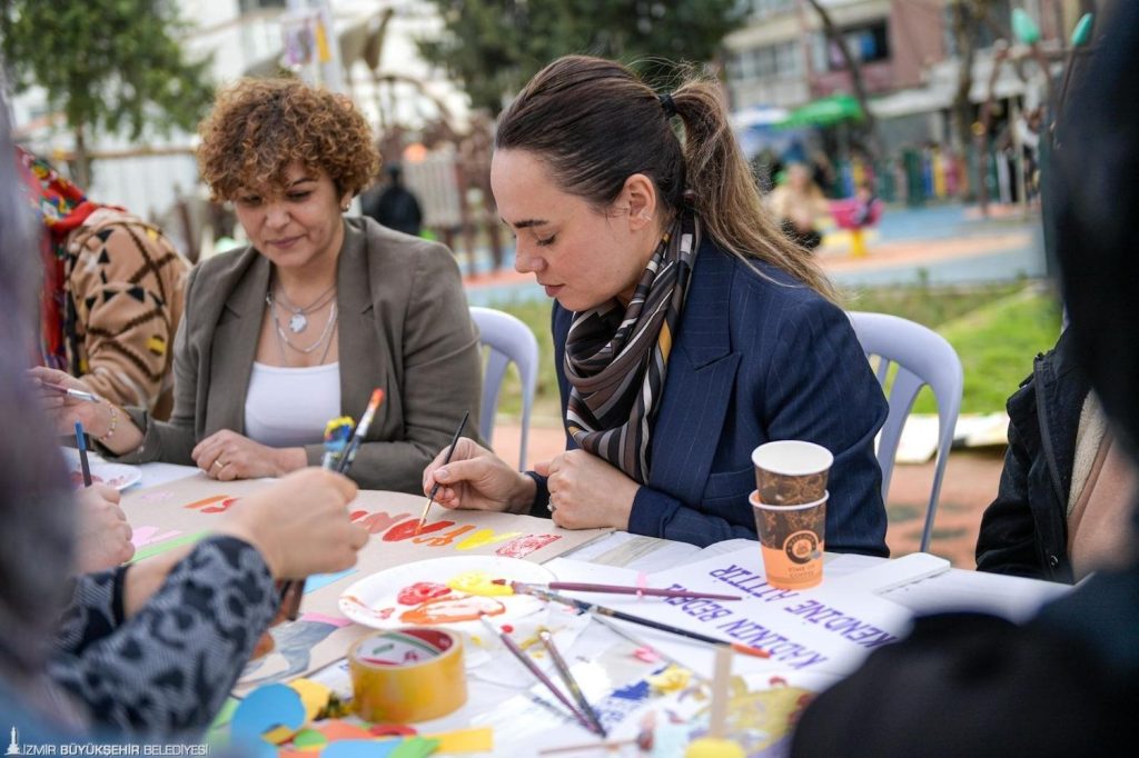 Etkinliğe katılan Fatime İnal “Kadın haklarının savunucusuyuz. Burada pankartları eğlenerek yapıyoruz. Çok mutluyuz, iyi ki böyle etkinlikler var” derken, Sadegül Bozbala da “Kadın sağlığı ile ilgili konuşuyoruz, çocuklar oynuyor. Kadınlarla ilgili pankart yapıyoruz. Çeşit çeşit çiçekler, kelebekler çiziyoruz. Dünya Kadınlar Günü’nü kutluyoruz. Kadına şiddete ‘hayır’ diyoruz. İzmir Büyükşehir Belediyesi’ne etkinlikler için teşekkür ediyoruz” dedi. İzmir Büyükşehir Belediyesi, 8 Mart Dünya Kadınlar Günü dolayısıyla çok sayıda etkinlik planladı. Bu kapsamda Torbalı, Urla, Bayraklı, Karşıyaka, Çeşme, Dikili, Konak ve Buca’da fotoğrafçılık atölyeleri, toplumsal cinsiyet eşitliği eğitimleri, belgesel gösterimleri ve söyleşiler düzenleniyor. 2 Mart-17 Nisan tarihleri arasında Vasıf Çınar Meydanı’nda “Görünmeyen Emeği Görmek Sergisi”, İzmir Kent Konseyi Kadın Meclisi iş birliği ile sergilenecek. 7 Mart’ta “Kendini Unutan Kadınlar Dayanışma ve Farkındalık Söyleşisi” 12.00-14.00 saatleri arasında Ahmed Adnan Saygun Sanat Merkezi’nde (AASSM) gerçekleştirilecek. 8-30 Mart tarihleri arasında Safiye Otman Sergisi, Tarihi Bıçakçı Han’da sergilenecek. Yeniden Sinematek gösterimlerinde 8 Mart saat 20.00’de Elhamra Sahnesi’nde Lütfi Ömer Akad’ın “Düğün” filmi beyaz perdeye yansıyacak.