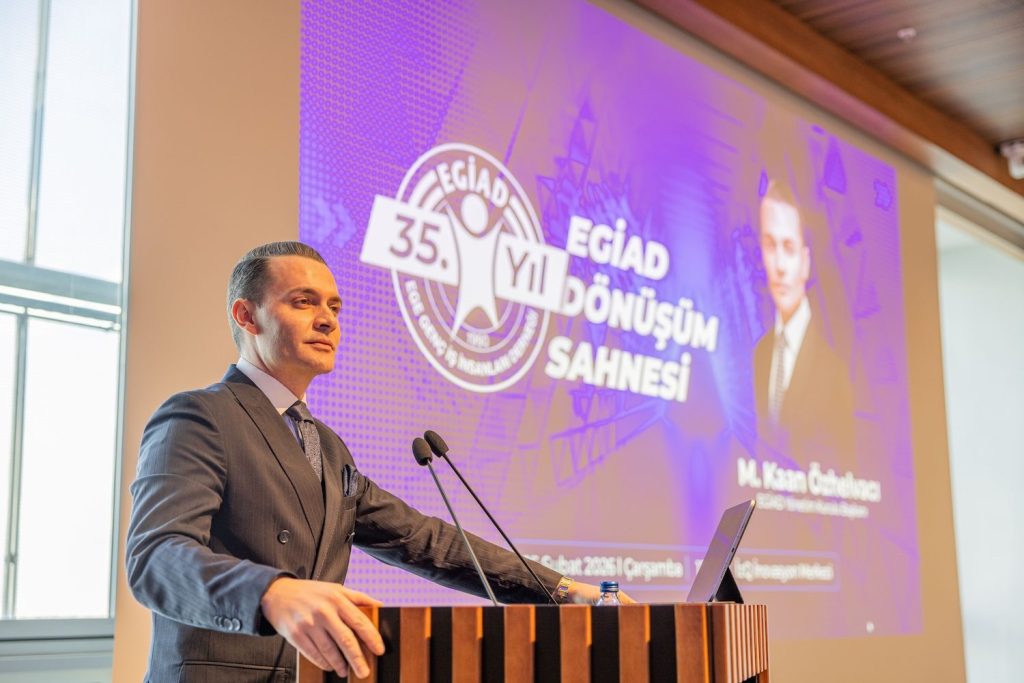 İçinden geçilen sürecin sıradan bir değişim dönemi olmadığını vurgulayan Özhelvacı, insanlığın tarihsel bir kırılma çağında olduğunu belirtti. Dijitalleşme, yapay zekâ, iklim krizi, yeni üretim modelleri, değişen iş gücü yapısı ve toplumsal beklentilerin tek bir gerçeğe işaret ettiğini söyleyen Özhelvacı, “Artık dönüşüm bir tercih değil, bir zorunluluktur” dedi. EGİAD’ın 18. Yönetim Dönemi stratejik merkezine “Üçüz Dönüşüm” yaklaşımını yerleştirdiklerini ifade eden Özhelvacı, bu yaklaşımı Dijital Dönüşüm, Yeşil Dönüşüm ve Toplumsal Dönüşüm başlıklarıyla tanımladı. “Biz bu dönüşümü yalnızca takip eden değil, yön veren bir nesil olmak istiyoruz” diye konuştu.