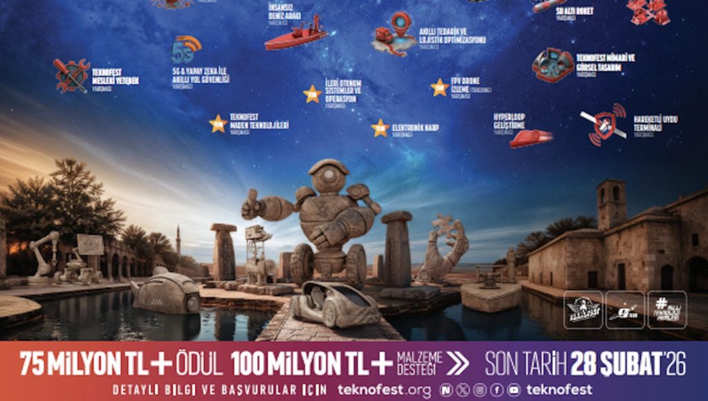 Dünyanın en büyük havacılık, uzay ve teknoloji festivali TEKNOFEST, 2026 yılında binlerce yıllık tarihi ve köklü medeniyet mirasıyla öne çıkan Şanlıurfa’da düzenlenecek. 30 Eylül – 4 Ekim tarihleri arasında GAP Havalimanı’nda gerçekleşecek TEKNOFEST 2026, bilimi ve teknolojiyi tarihin sıfır noktası Şanlıurfa’da milyonlarla buluşturacak. Her yıl yenilenen yarışma kategorileriyle dikkat çeken TEKNOFEST, dünyanın en büyük ödüllü teknoloji yarışmalarına bu yıl da ev sahipliği yapıyor. 2026 yılında 51 yarışma ve 132 alt kategoride düzenlenecek TEKNOFEST Teknoloji Yarışmaları için başvurular, 28 Şubat’a kadar devam ediyor.