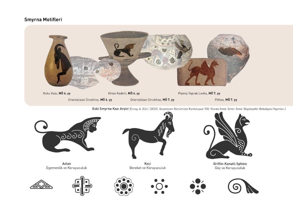 Aks üzerindeki belirli odak noktalarında uygulanan podima (yürüme yolu) zemin kaplamalarında, Antik Smyrna Höyüğü kazılarında ortaya çıkarılan arkeolojik buluntulardaki bezeme ve motif repertuvarından referans alındı. Bu zemin dokusu, modern malzeme kullanımıyla yeniden yorumlandı. Podima yüzeylerdeki desen geçişleri, Smyrna’nın farklı dönemlerine ait kültürel katmanları sembolik biçimde yansıtacak. Ayrıca doğal taş zemin kaplaması üzerine, tarihsel referans noktalarına yönlendirme sağlayan mesafe bildirimli yer işaretleri entegre edildi. Höyükteki prehistorik oval planlı ev tipolojisinden ilham alınarak tasarlanan çağdaş üst örtü ve oturma birimleri ile höyükten çıkarılan buluntulardaki desenlerden ilham alınan üçgen formlu kentsel donatılar, geçmişteki barınma biçimlerinin mekânsal hafızasını ve kültürel izlerini günümüze taşıyor. Bu elemanlar hem gölgelik hem de dinlenme alanı işlevi görüyor; form ve malzeme dili açısından tarihsel referansları çağdaş kent mobilyasına dönüştürüyor. Proje kapsamında aynı zamanda sokak aydınlatma sisteminin; enerji verimliliği yüksek, homojen ışık dağılımı sağlayan ve yaya güvenliğini artıran armatürlerle yenilenmesi öngörüldü. Aydınlatma elemanları, aks boyunca görsel konforu destekleyecek şekilde konumlandırılarak gece kullanım senaryolarına uygun, süreklilik arz eden bir aydınlatma kurgusu oluşturuldu.