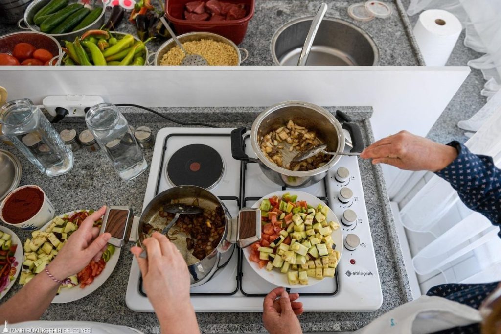 İzmir Büyükşehir Belediyesi Kadın ve Aile Hizmetleri Dairesi Başkanlığı ve Sosyal Hizmetler Dairesi Başkanlığı iş birliğinde Çiğli Evka-2 Mahallesi’nde kadınlara yönelik Mahalle Mutfağı projesi başladı. Mahalle Mutfağı, kadınların hem birlikte yemek yapabileceği hem de çeşitli eğitimler alabileceği bir dayanışma alanı olarak kurgulandı. Aşevleri Şube Müdürlüğü tarafından sağlanan ürünlerle dengeli, ekonomik ve besleyici menüler hazırlayan kadınlara, gıda mühendisleri ve Meslek Fabrikası Şube Müdürlüğü eğitmenleri eşlik ediyor.